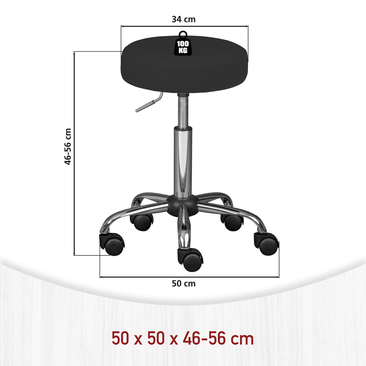 Acest scaun rotativ robust, de culoare neagra, cu designul sau atemporal, este versatil si poate fi utilizat intr-o varietate de contexte. Fie ca este acasa, in cabinetul medical sau intr-un salon de infrumusetare, ofera un confort optim la sedere.