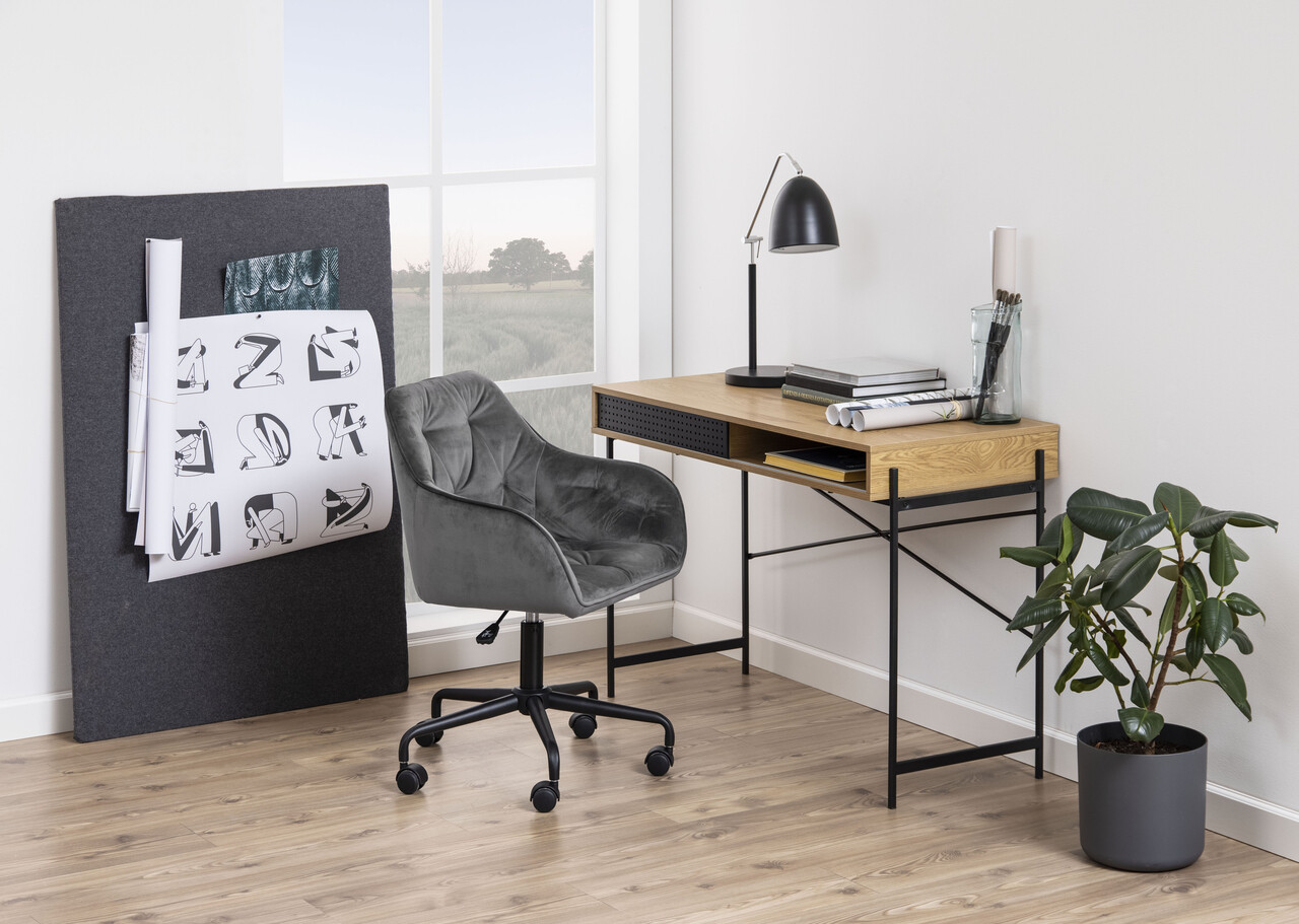 Scaun de birou Brooke, Actona, 59x58.5x88.5 cm, rotativ, catifea/otel, gri inchis