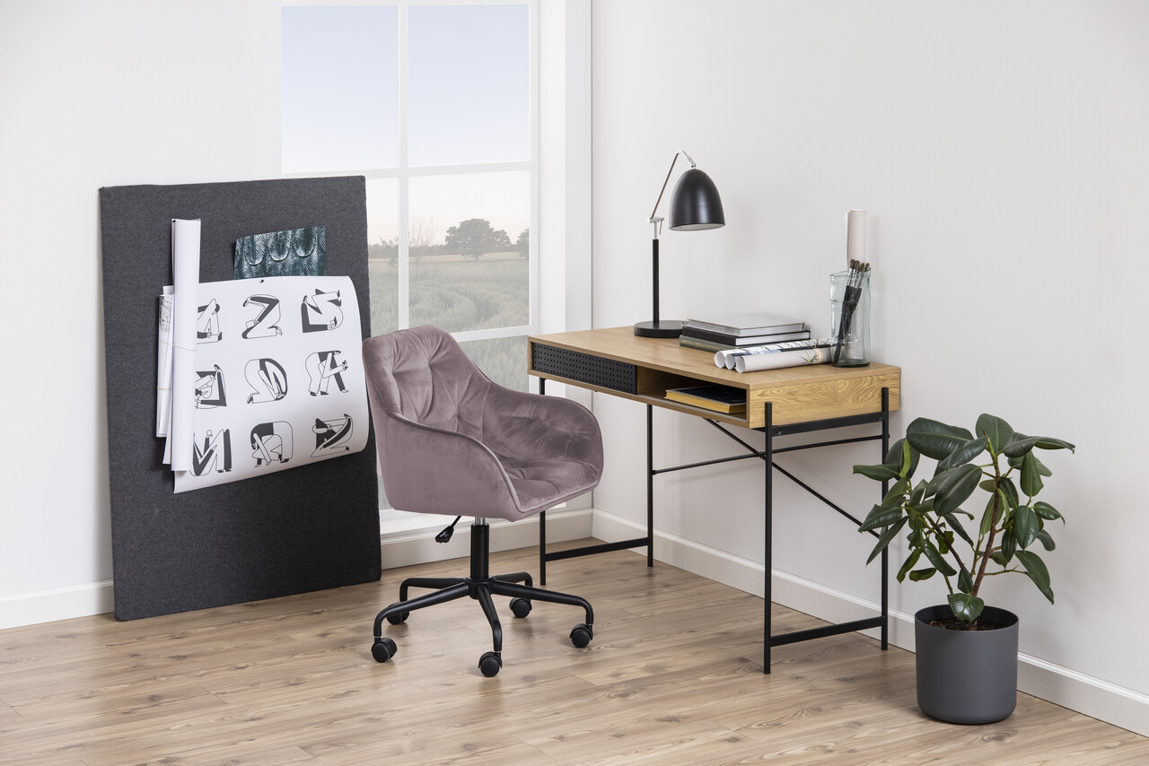 Scaun de birou Brooke, Actona, 59x58.5x88.5 cm, rotativ, catifea/otel, roz pudrat
