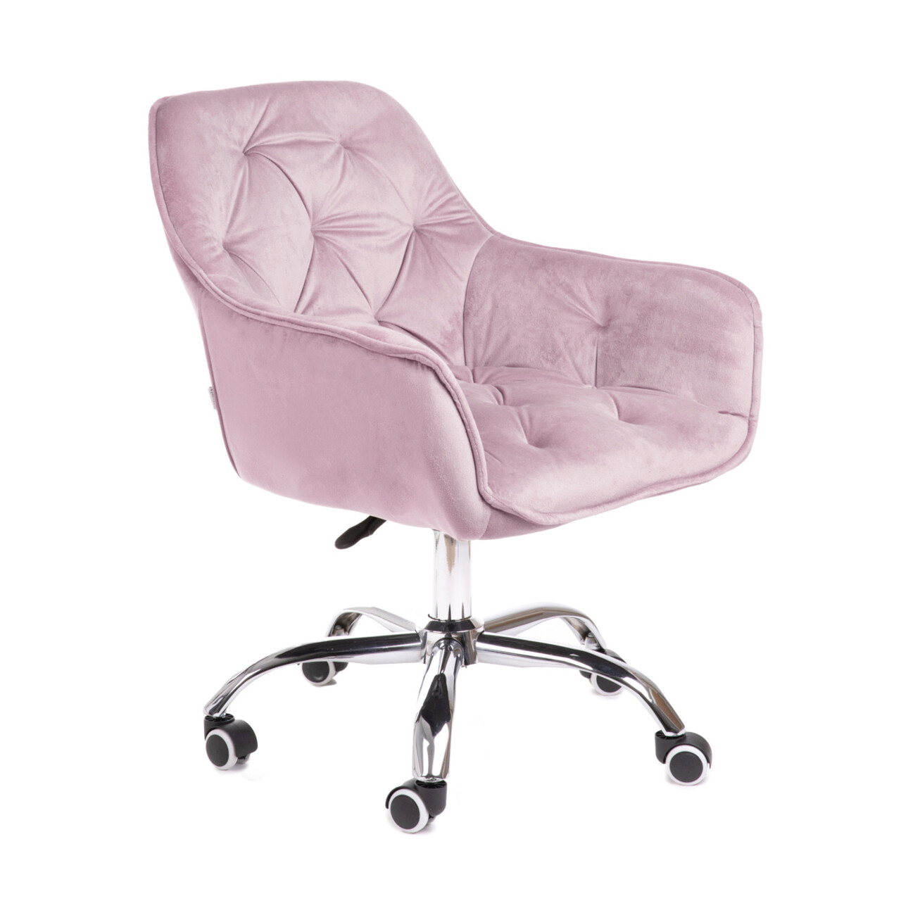 Scaun de birou Flossi, Homla, 55.5x54.5x80/90 cm, metal/catifea din poliester, roz