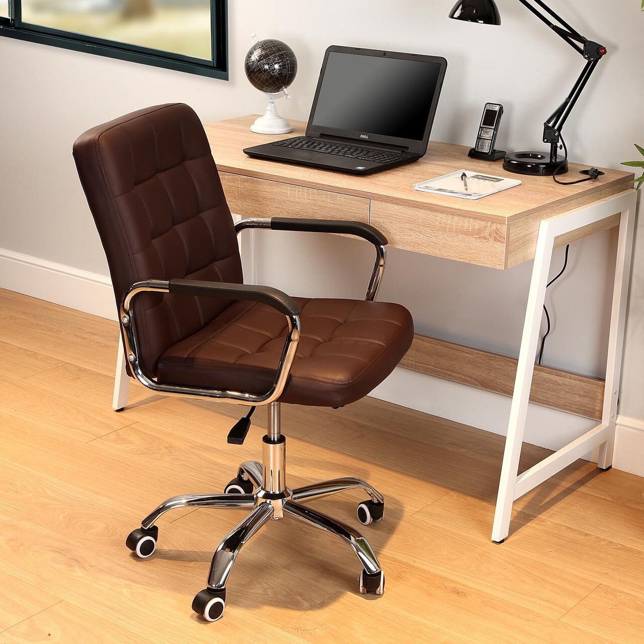 Scaun de birou Kevin, Versa, 54 x 44 x 114 cm, piele ecologica, maro