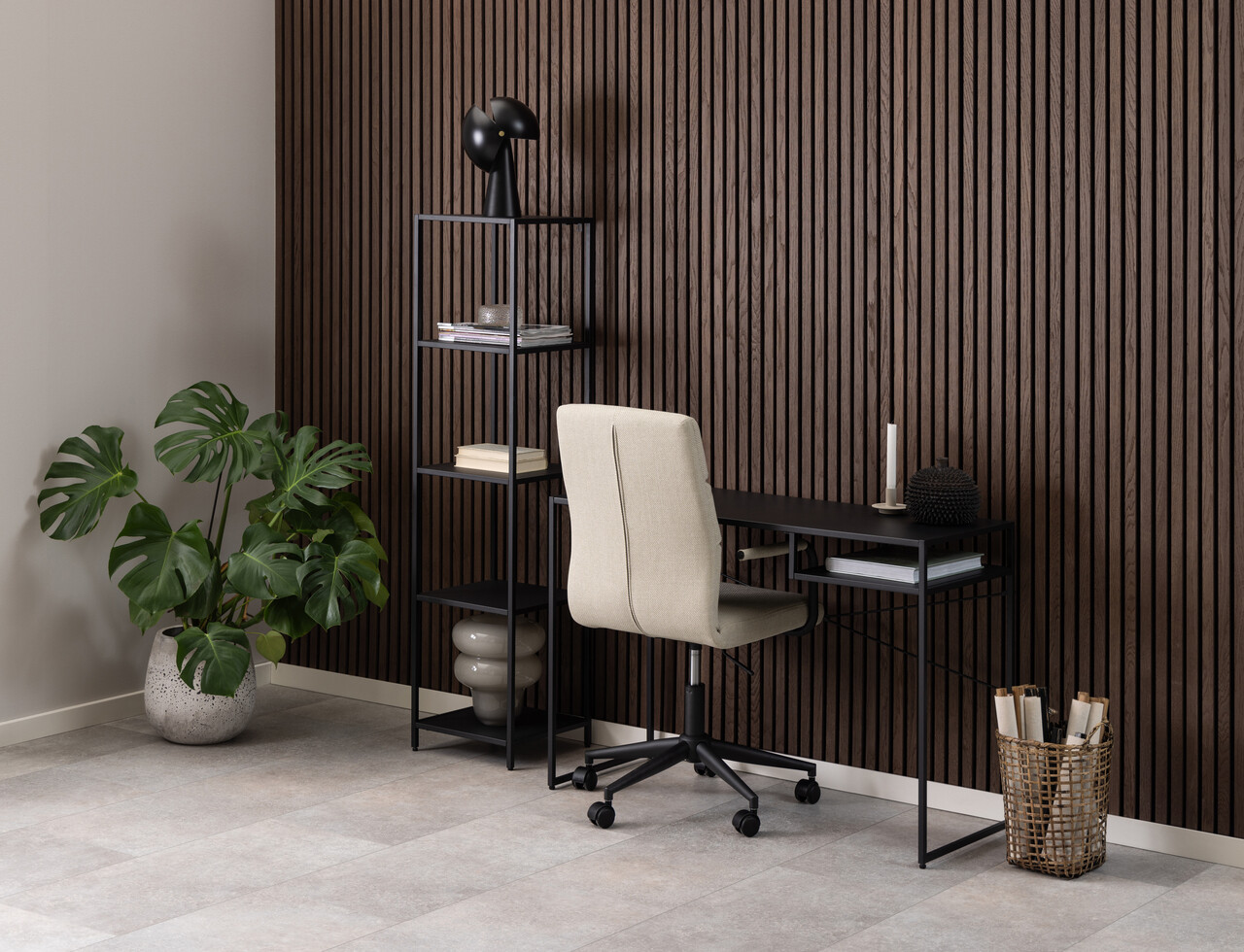 Scaun de birou Nolan, Actona, 52x60x93 cm, rotativ, tesatura structurata/otel, bej