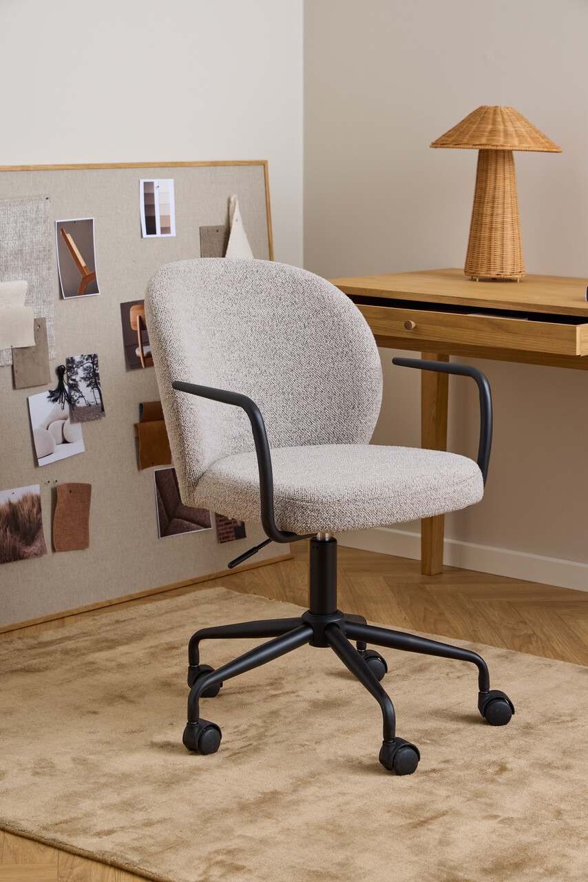 Scaun de birou Patricia, Actona, 59x50x93.5 cm, rotativ, tesatura Boucle/otel, bej