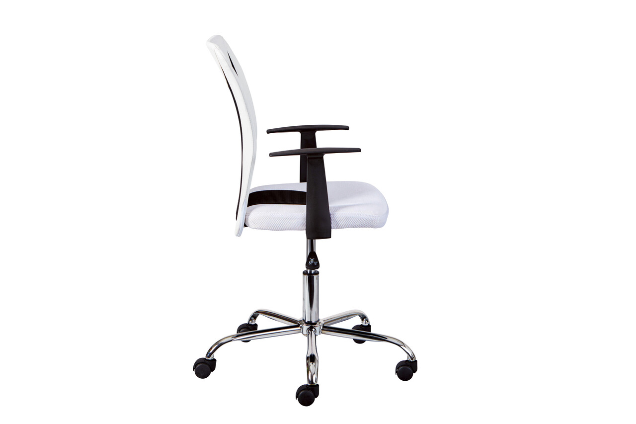 Acest scaun rotativ pentru copii ofera suport pentru temele zilnice si sesiunile de studiu. Designul modern este disponibil in mai multe culori la moda. Husa din plasa respirabila reduce transpiratia in timpul perioadelor lungi de sedere. Spatarul se ajusteaza la postura utilizatorului. Relaxat si sanatos: Spatarul cu forma ergonomica sustine partea inferioara a spatelui si promoveaza o postura corecta, ajutand la prevenirea durerilor de spate. Scaunul dispune, de asemenea, de cotiere pentru a ameliora tensiunea din jurul umerilor. Este echipat cu o baza metalica cromata de inalta calitate, cu cinci roti de siguranta cu frana, dependente de sarcina, si un arc pe gaz de siguranta certificat, care sustine o greutate maxima de 100 kg. Arcul pe gaz permite reglarea continua a inaltimii, asigurand un confort optim pentru perioade lungi de sedere.