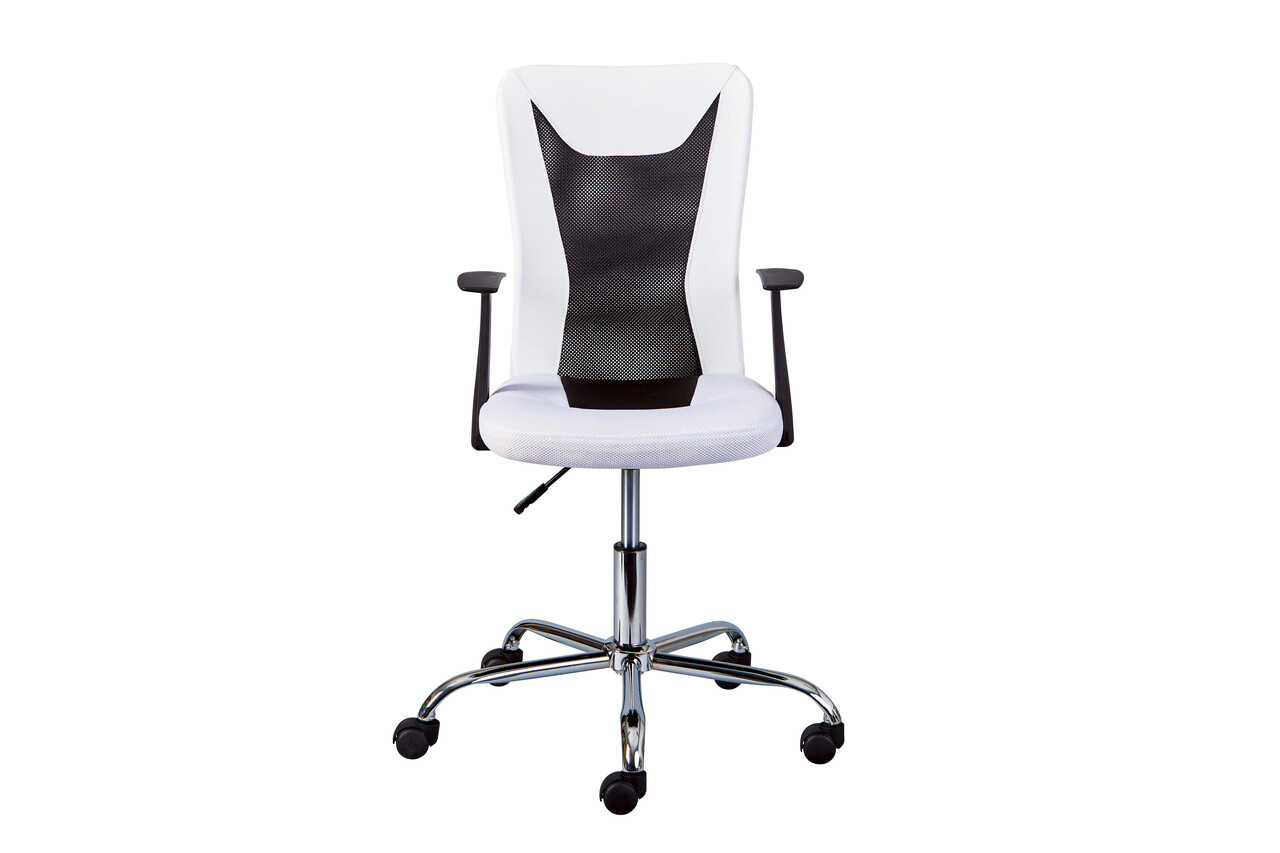 Scaun de birou pentru copii Donny, Inter Link, 55x54.5x85-95 cm, rotativ, metal/poliuretan, alb/negru