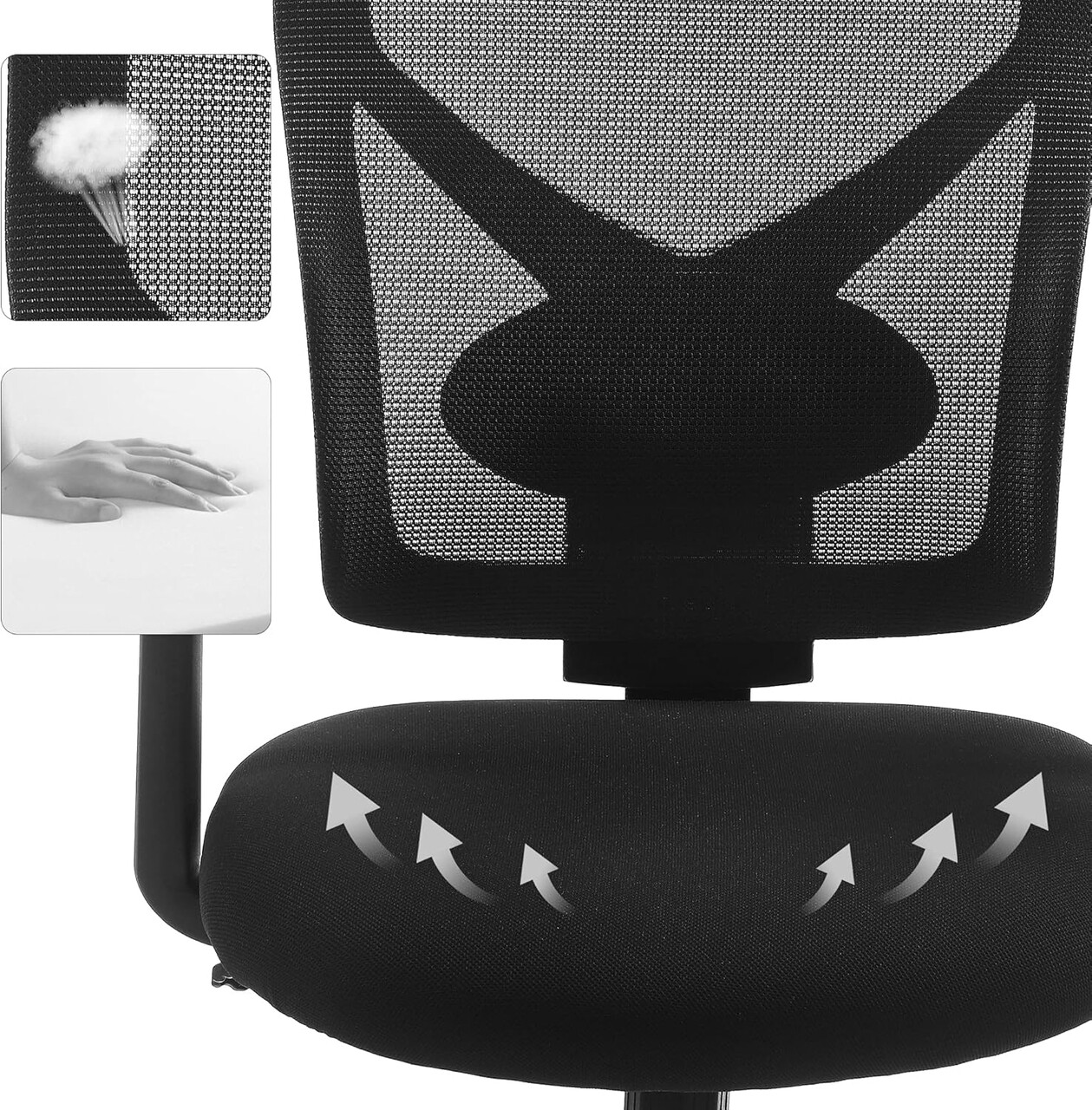 Scaun de birou, Songmics, ergonimic, suport lombar reglabi, sezut cu arcuri, max 120 kg, negru