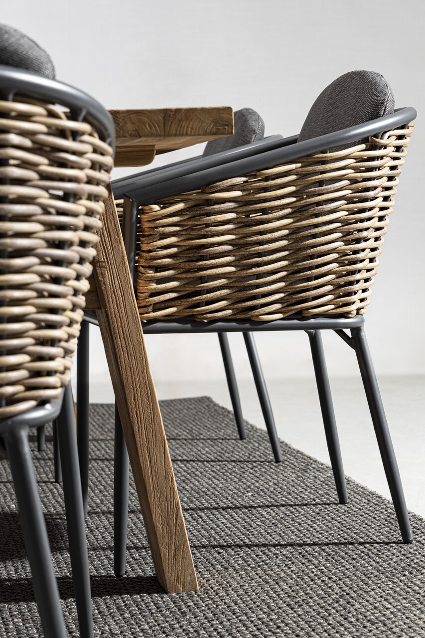 Scaun de gradina Maribela, Bizzotto, 63 x 63 x 79.5 cm, aluminiu/fibre sintetice/ofelina, gri carbune