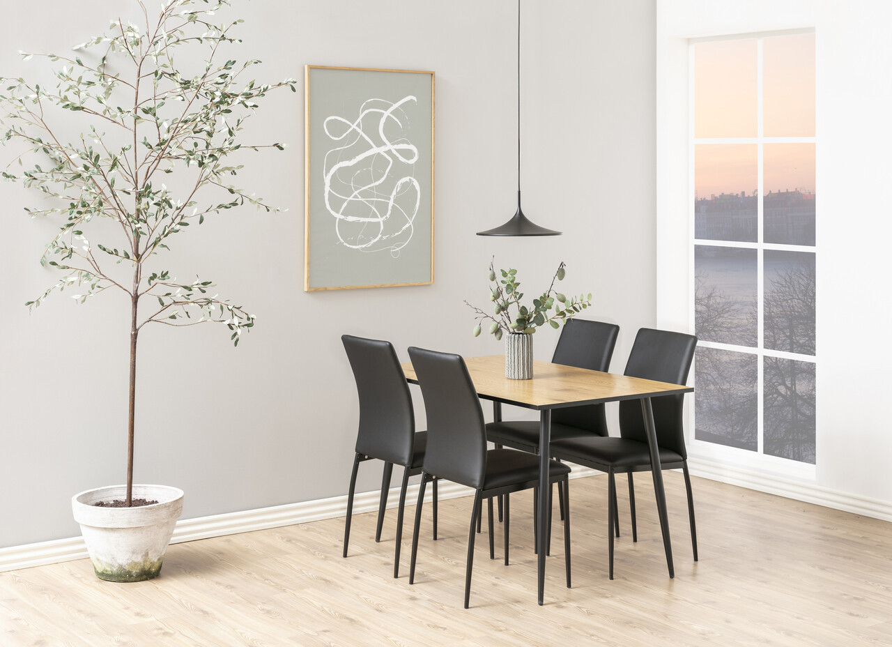 Scaun Demina, Actona, 43.5x53x92 cm, piele ecologica/otel, negru