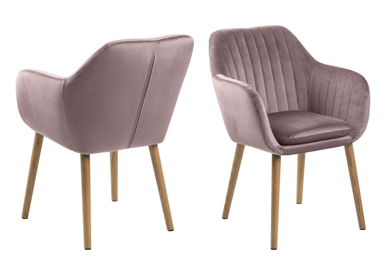 Scaun Emilia, Actona, 57x61x83 cm, catifea/lemn de stejar, roz pudrat