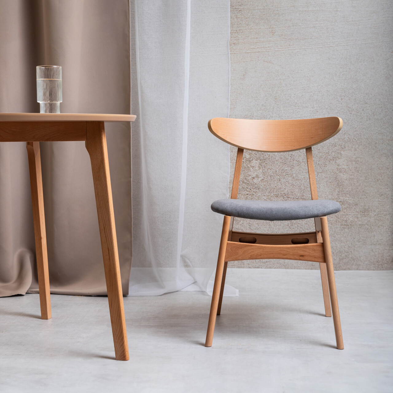Scaun Eroso, Homla, 48x55.5x74.8 cm, poliester/lemn, natur/gri