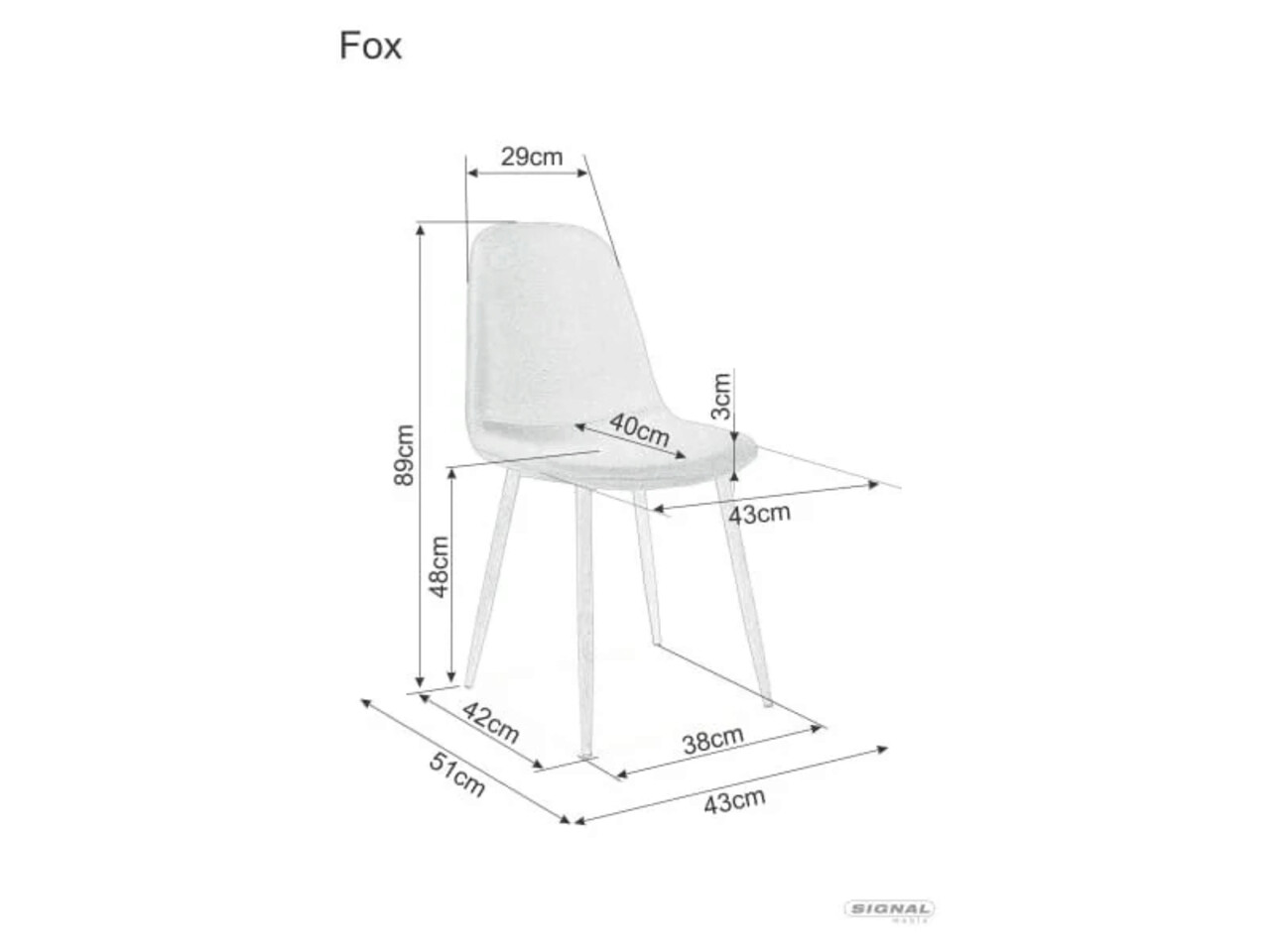 Scaun Fox, Signal, 44x39x86 cm, textil/otel, gri/alb