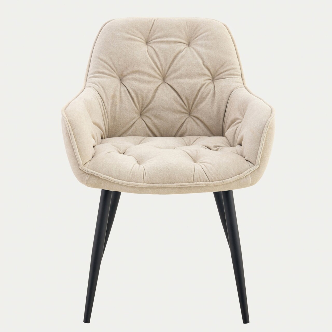 Scaunul tapitat pentru sufragerie FUSSY, intr-o culoare bej atemporala, combina confortul cu eleganta. Scaunul cu contururi atent studiate, tapitat cu o tesatura extrem de moale, dar rezistenta la abraziune, confera piesei un aspect modern si elegant. Matlasarea decorativa adauga o nota de rafinament. Aceasta piesa se potriveste perfect in orice camera din casa.