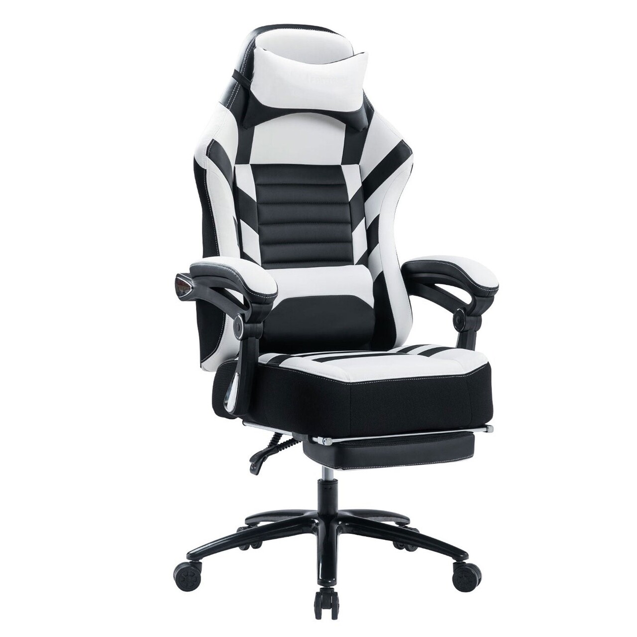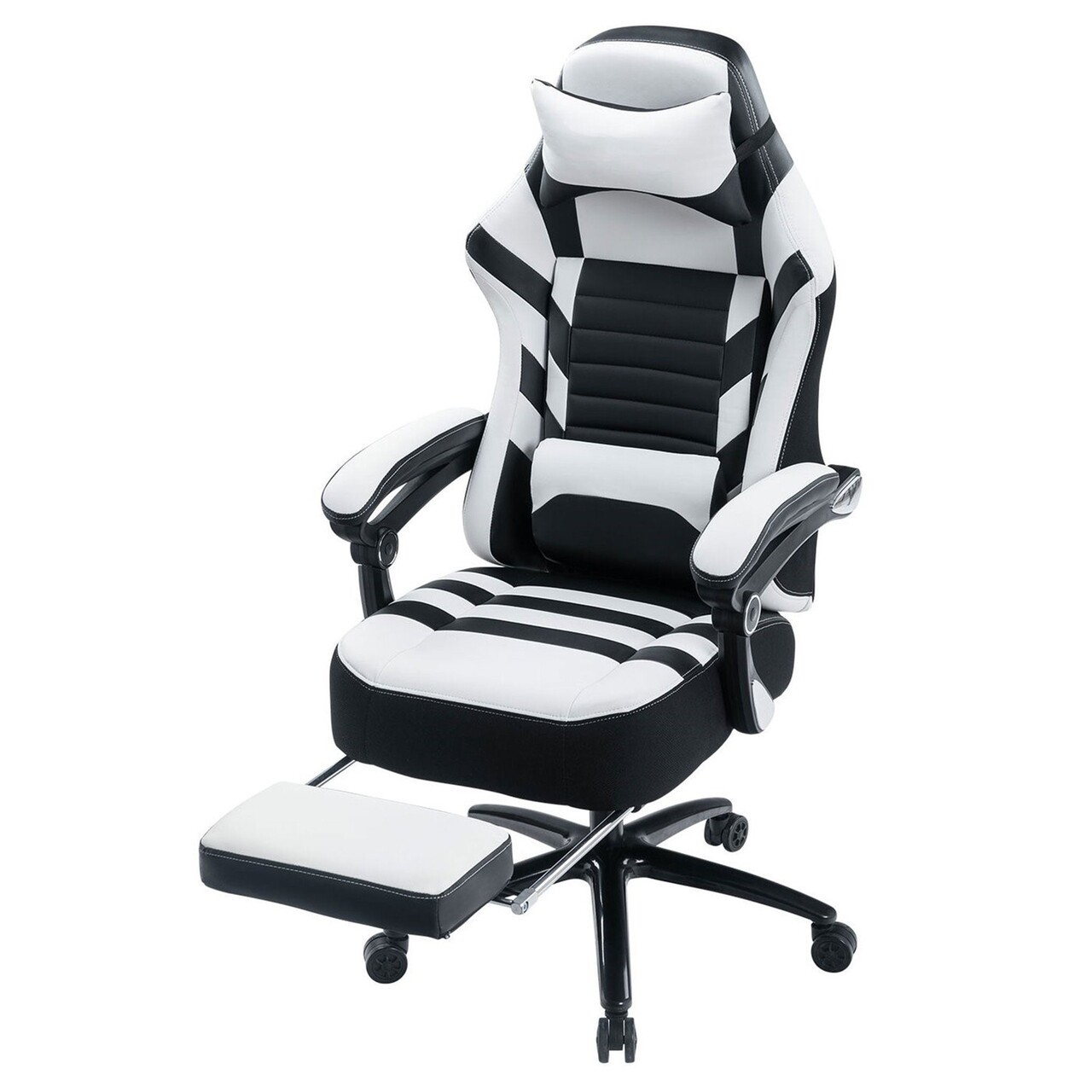 Scaun gaming, Axel, L.69 l.67 H.130-136, piele ecologica/plastic/metal, alb/negru