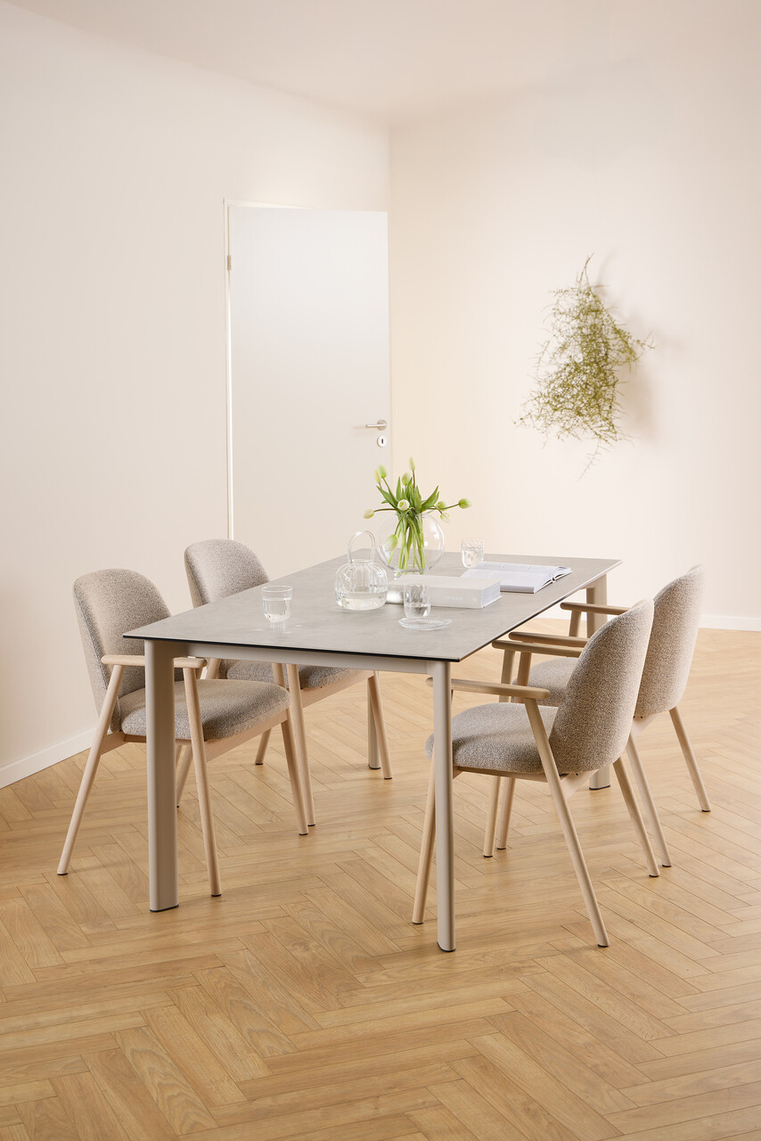 Scaun Leo, Actona, 55.5x57x80.5 cm, tesatura Boucle/lemn de stejar, bej