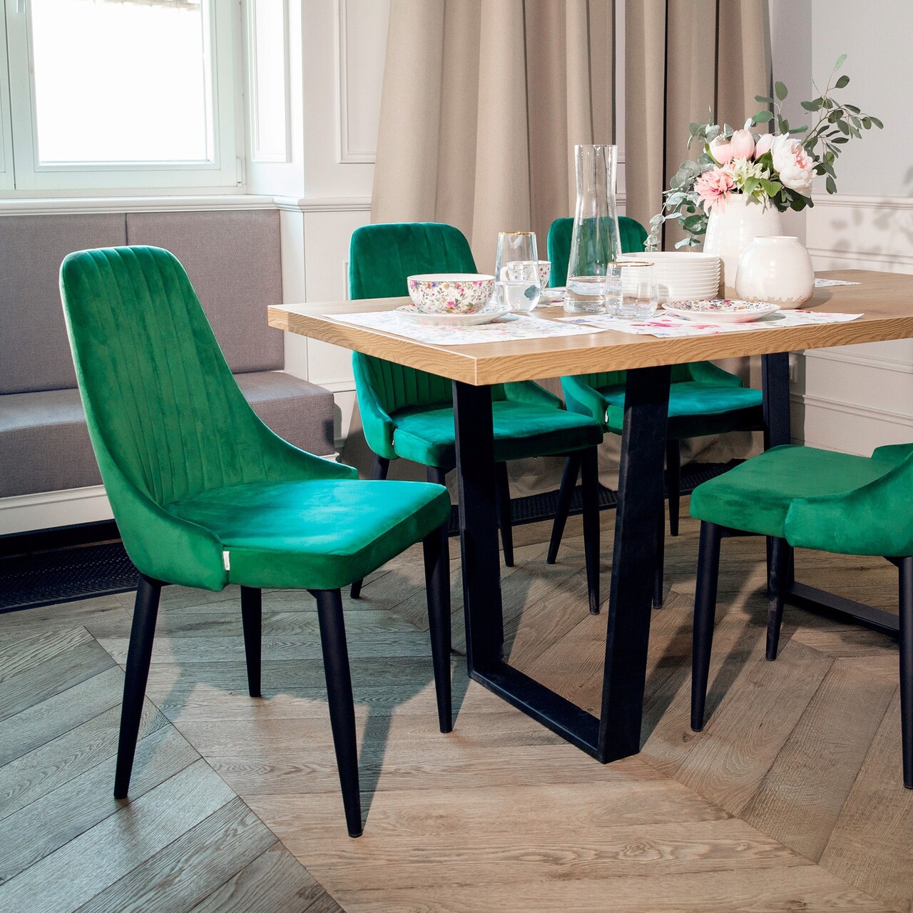 Scaun Louis, Homla, 59x47x88 cm, metal/catifea din poliester, verde