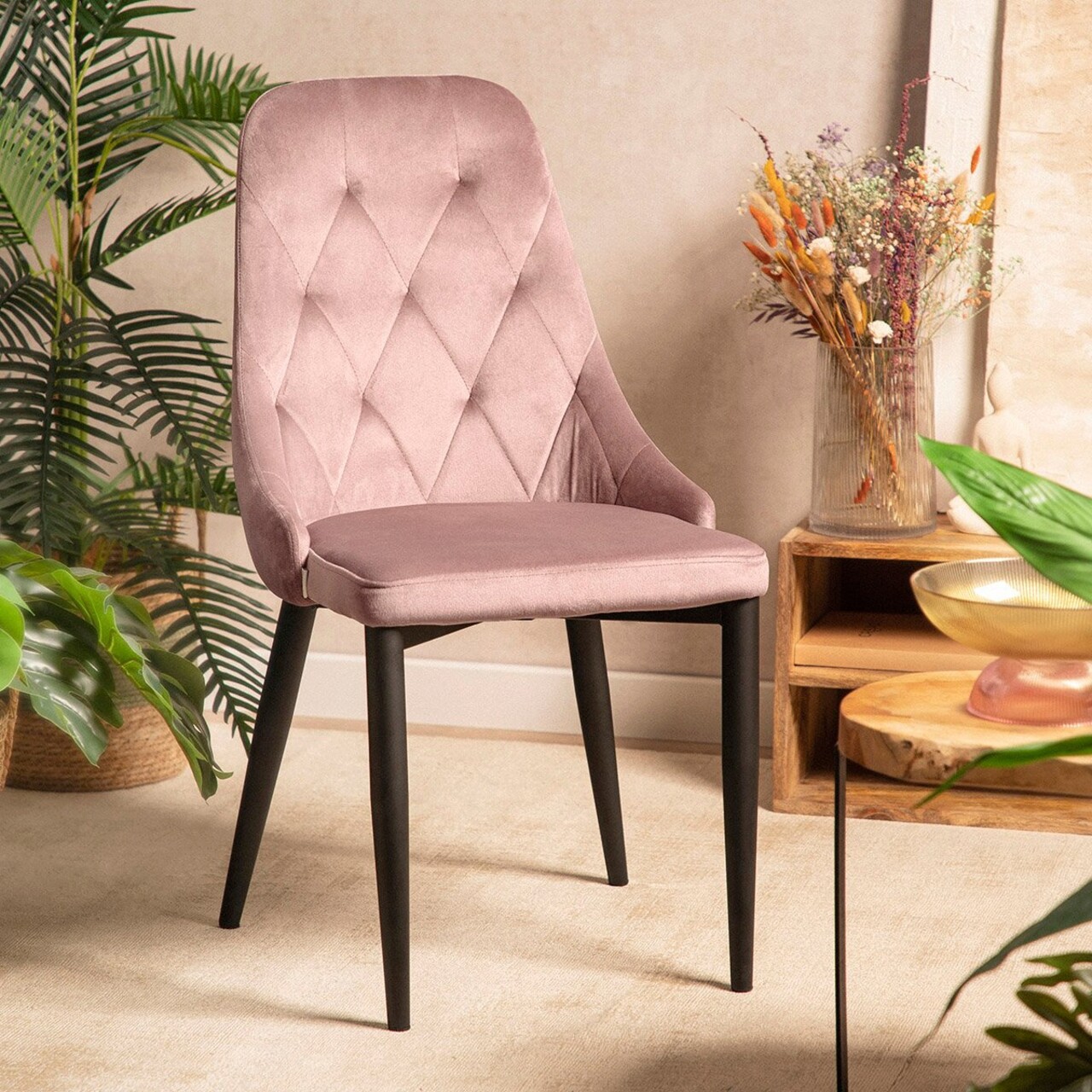 Scaun Louis Quilter, Homla, 59x47x88 cm, metal/catifea din poliester, roz