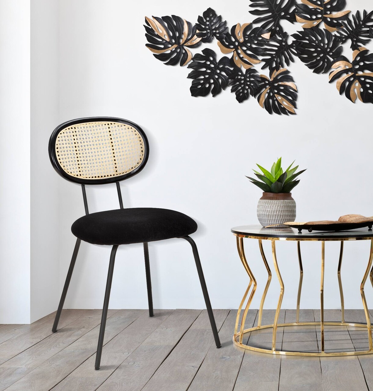 Scaun Osaka, Mauro Ferretti, 43x54x80 cm, fier/ratan, negru