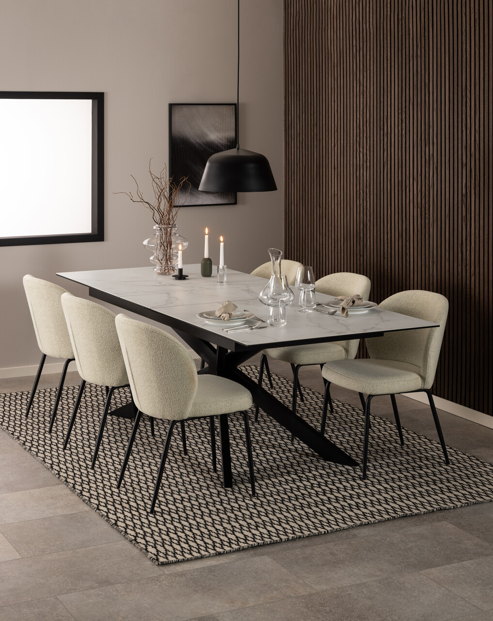 Scaun Patricia, Actona, 52x57.5x82 cm, tesatura Boucle/otel, crem