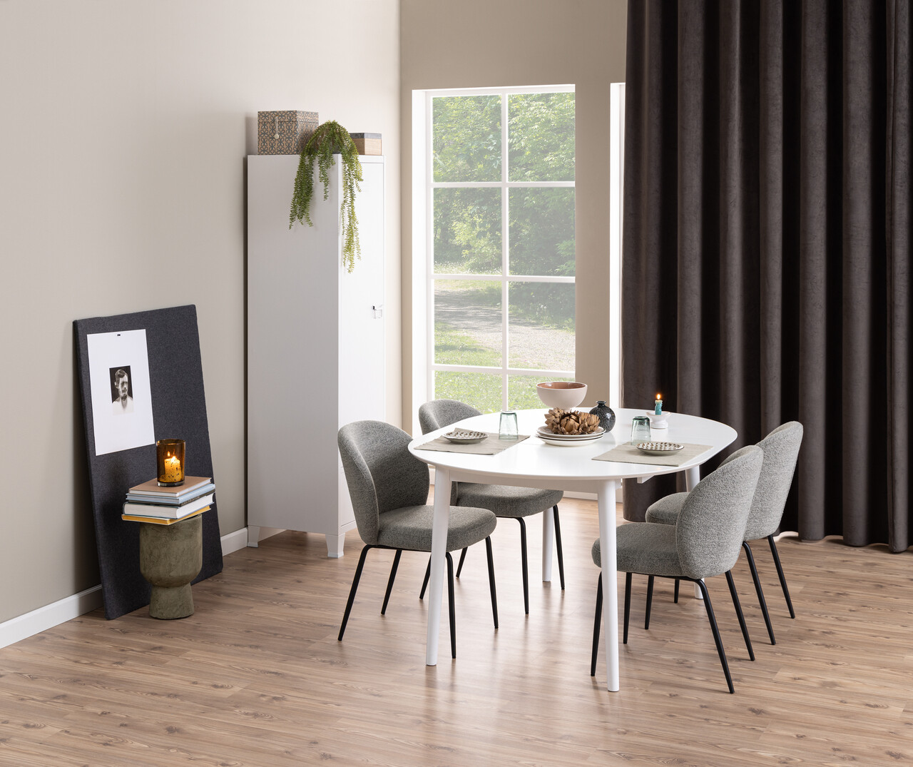 Scaun Patricia, Actona, 52x57.5x82 cm, tesatura Boucle/otel, gri