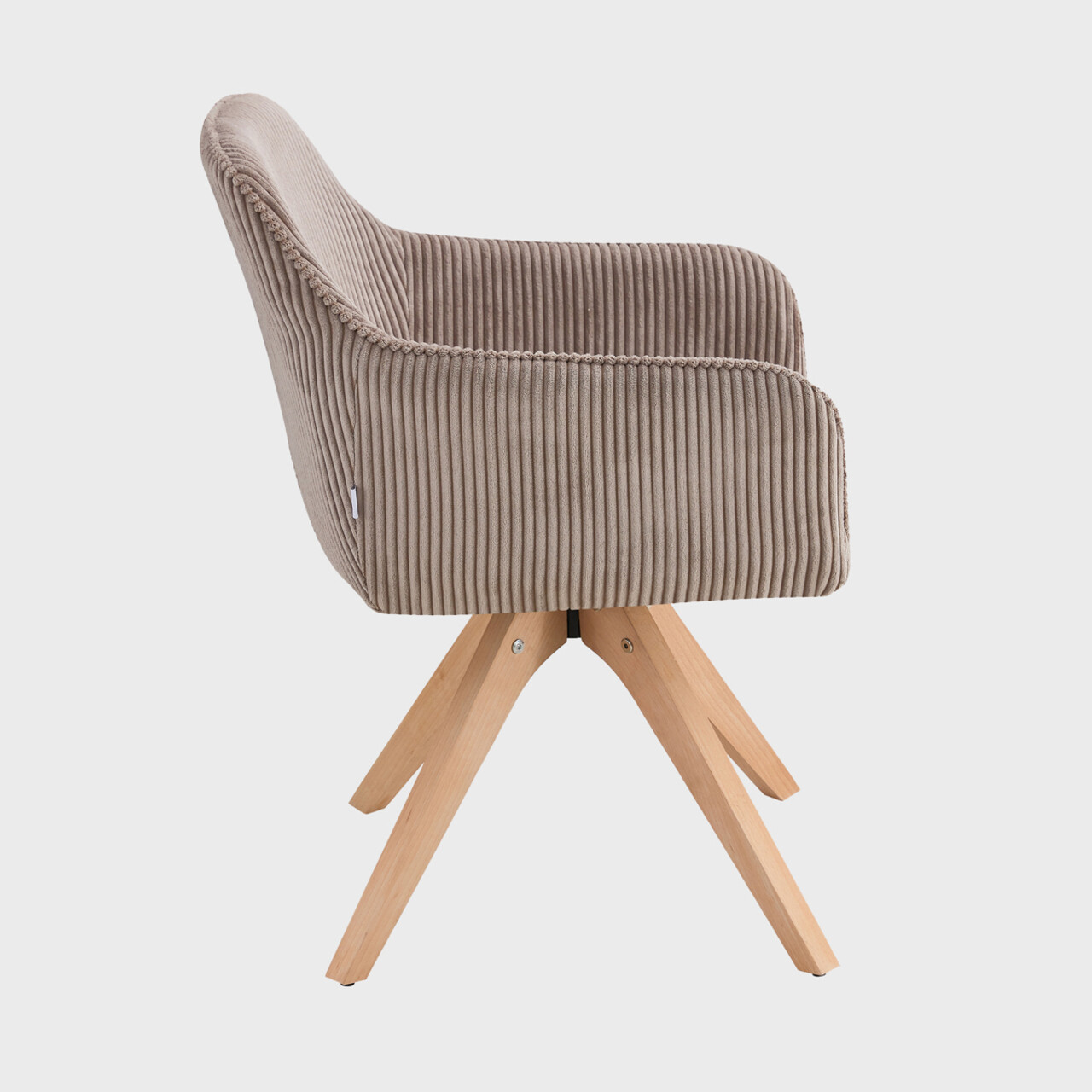 Materialul de inalta calitate al scaunului PEMA este nu doar moale la atingere dar si durabil, garantand confort pe termen lung. Picioarele din lemn cu finisaj natural nu doar ca asigura o stabilitate excelenta dar adauga si un farmec subtil si o nota calda, facandu-l o piesa de mobilier perfecta pentru orice spatiu, fie ca este vorba de living, birou sau zona de dining.