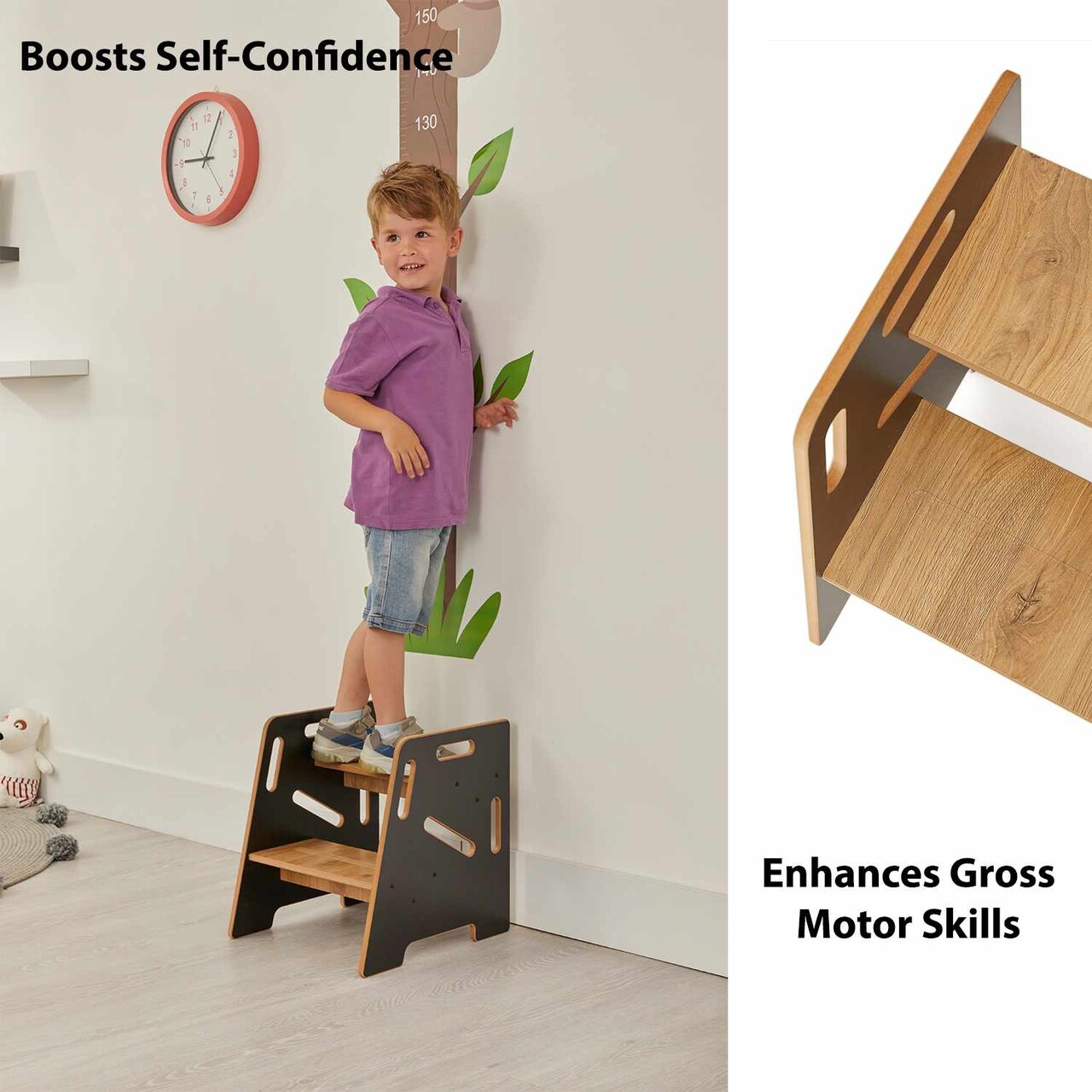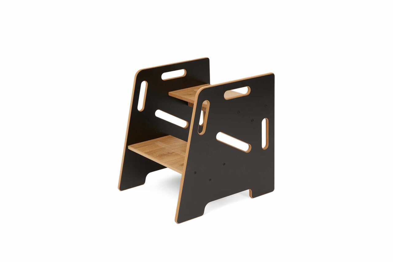 Scaun pentru copii, Hanah Home, Step Stool, 34x39x39 cm, Negru / Natural