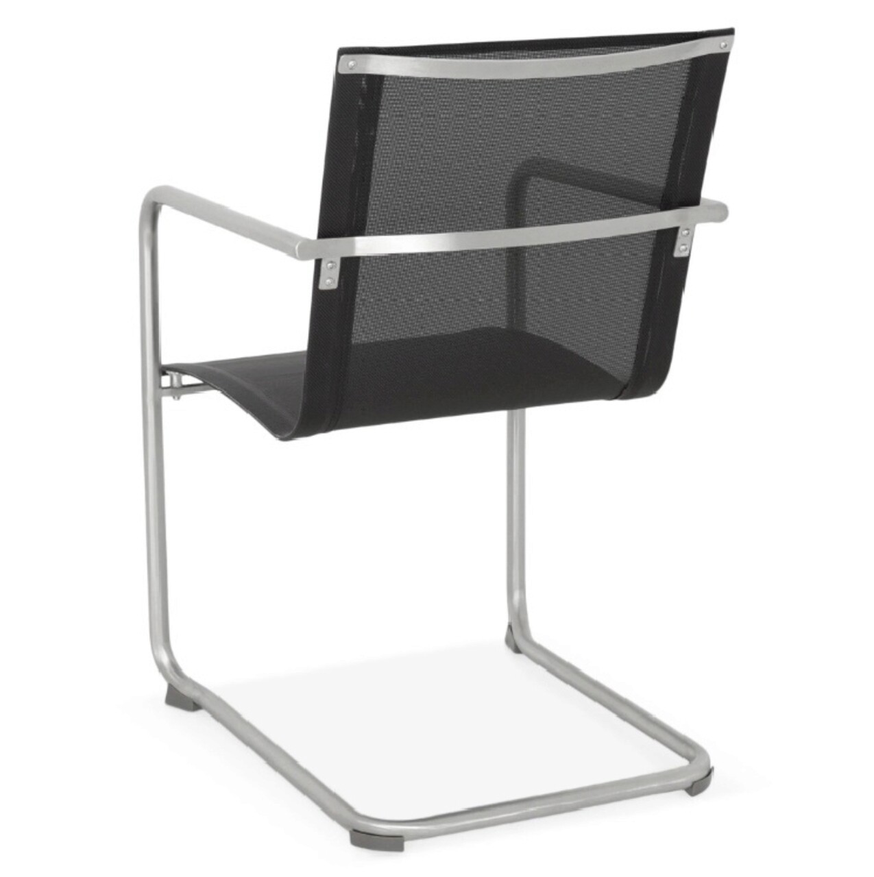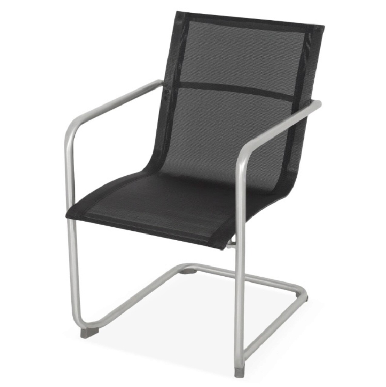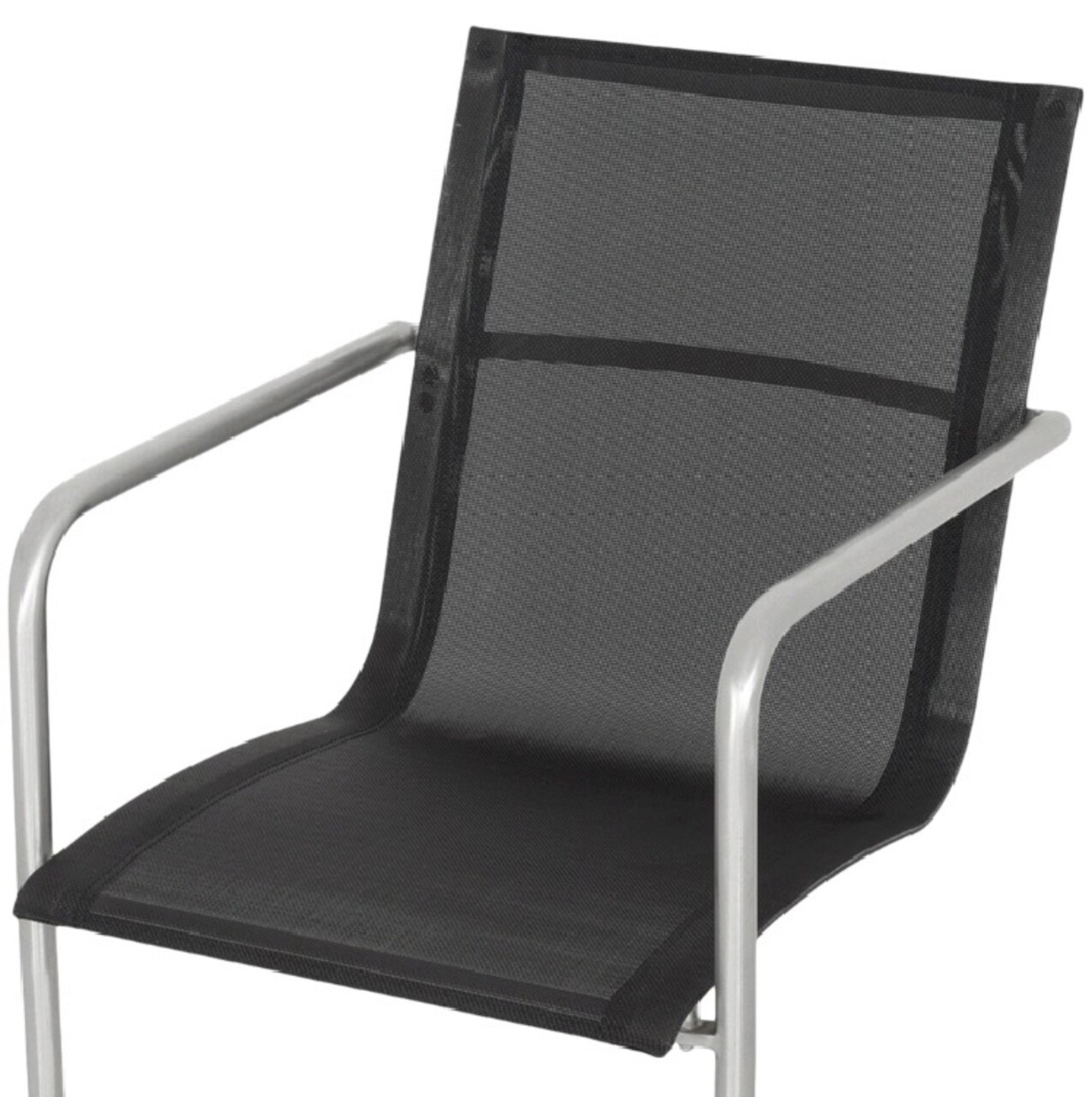 Realizat din structura solida de inox. Sezutul si spatarul sunt imbracate cu textilina fina cu protectie UV.