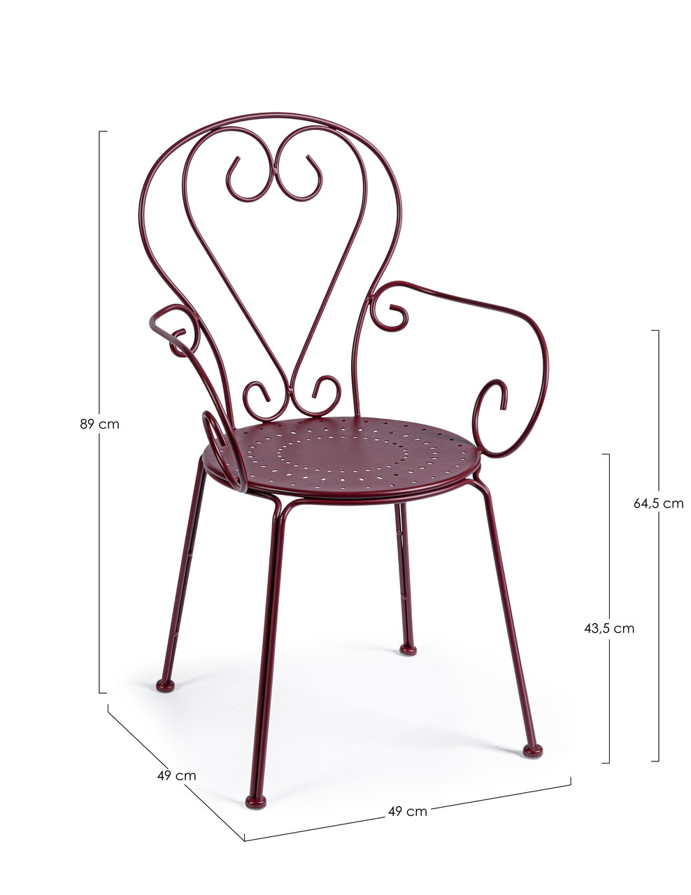 Scaun pentru gradina Etienne, Bizzotto, 49x49x89 cm, otel, invelis e-coating, finisaj mat, bordo