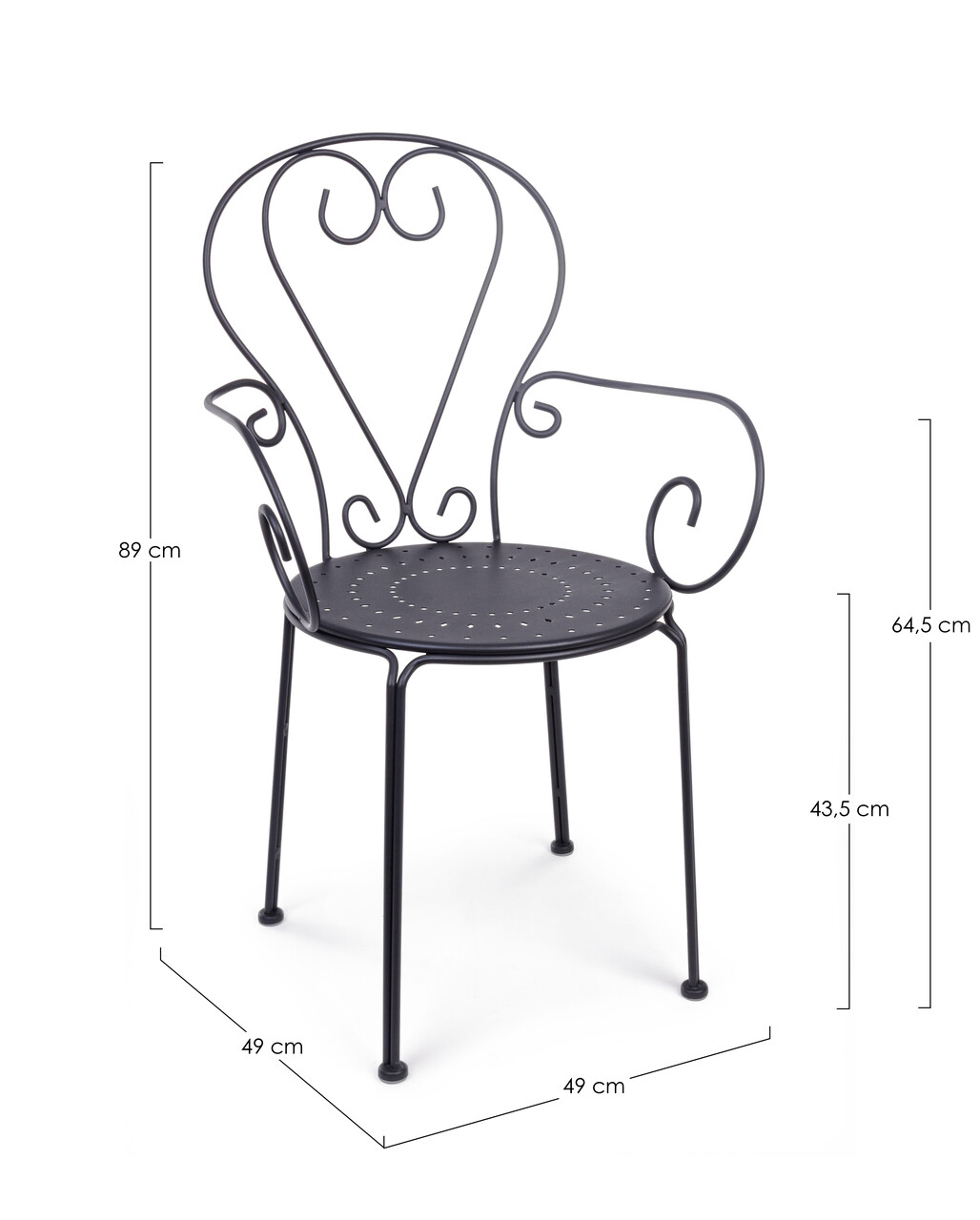 Scaun pentru gradina Etienne, Bizzotto, 49x49x89 cm, otel, invelis e-coating, finisaj mat, gri carbune