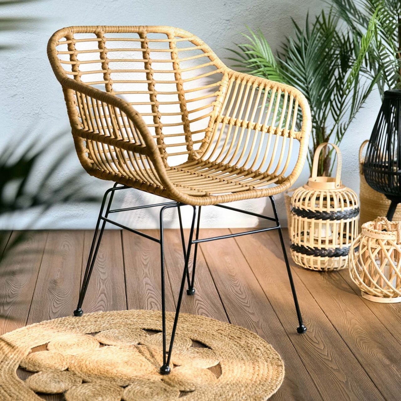 Scaun pentru gradina Jardin, Homla, 57x62x81 cm, metal/ratan, natur/negru