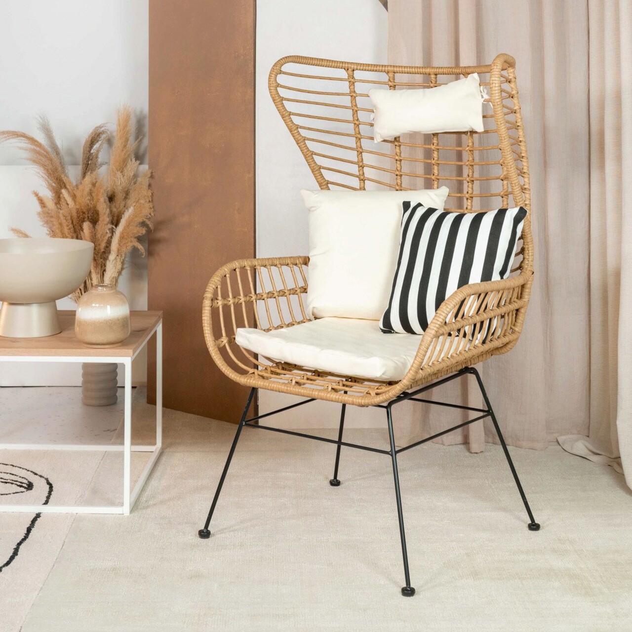 Scaun pentru gradina Jardin, Homla, 70x80x110 cm, ratan/metal, natur/negru