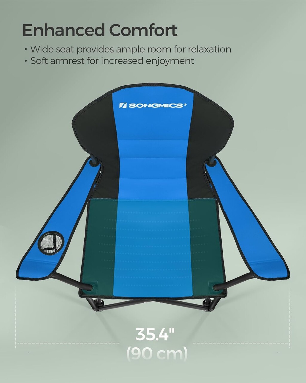Scaun pliabil pentru camping, Songmics, max 250 kg, 90x55x102 cm, otel/tesatura Oxford/sezut din spuma, albastru