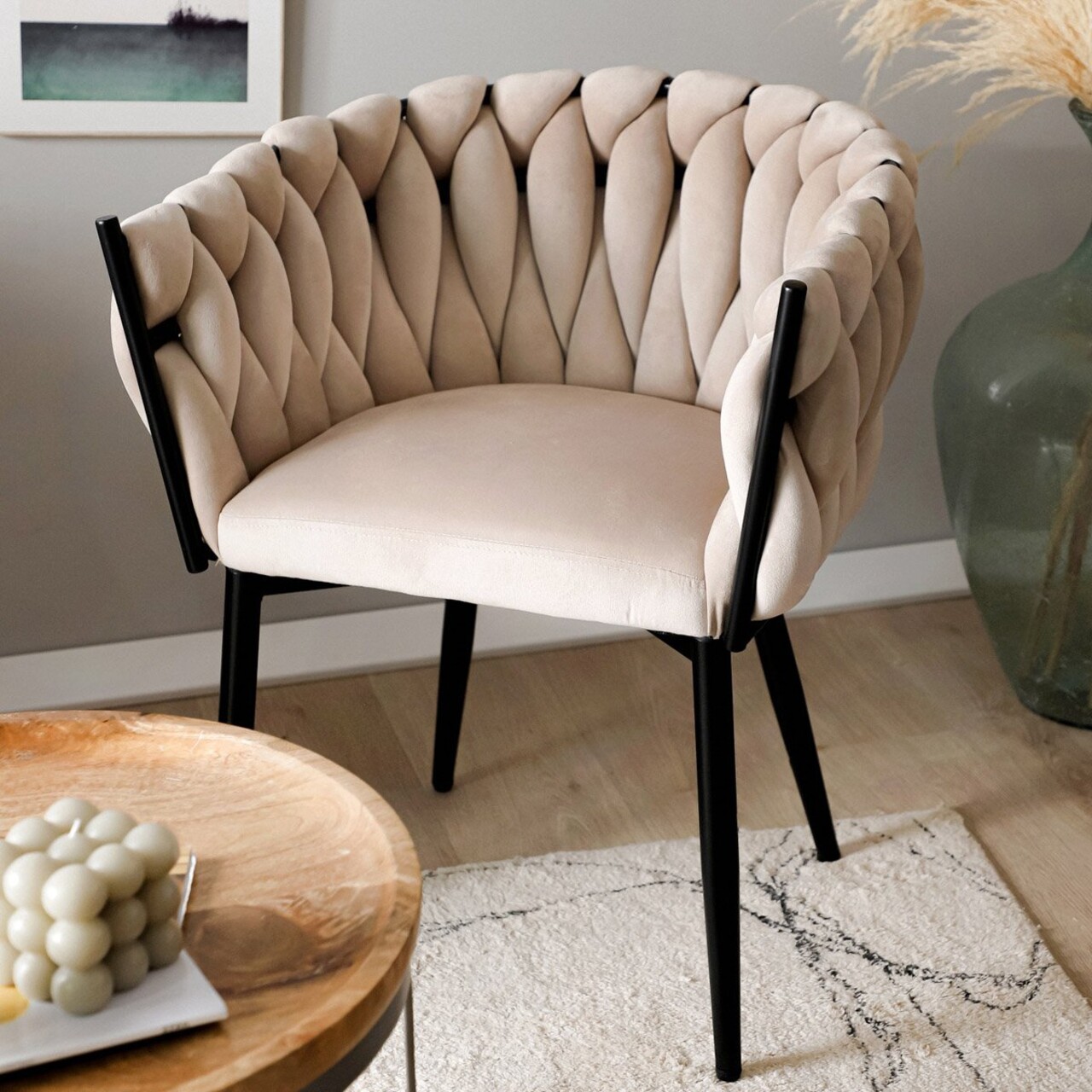 Scaun Prinssi, Homla, 64x54x73 cm, metal/catifea din poliester, bej