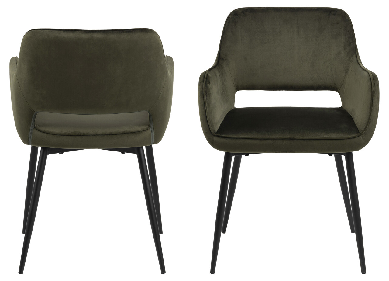 Scaun Ranja, Actona, 56x59.5x79 cm, catifea/otel, verde olive