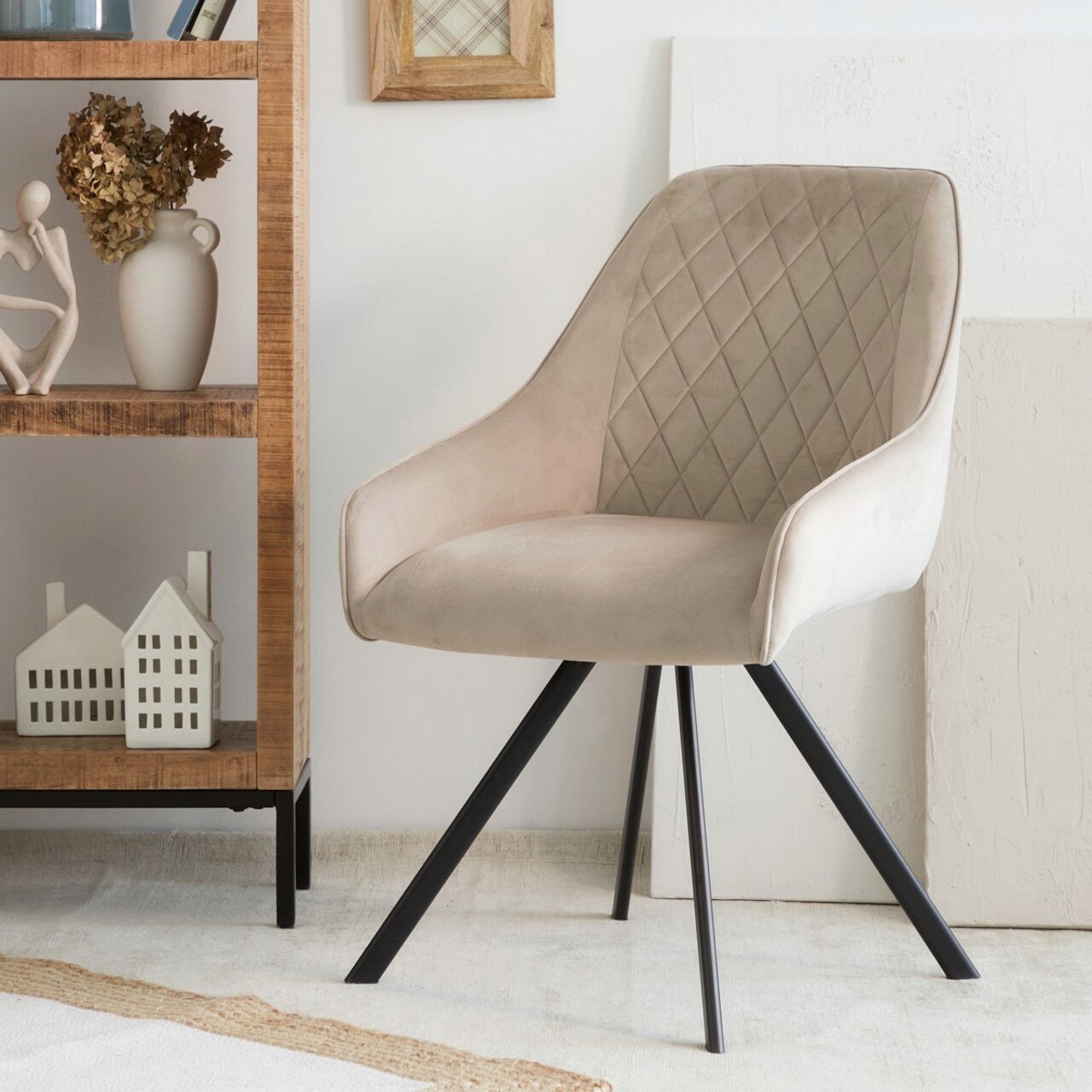 Scaun rotativ Laurent, Homla, 55x54x85 cm, metal/catifea din poliester, bej