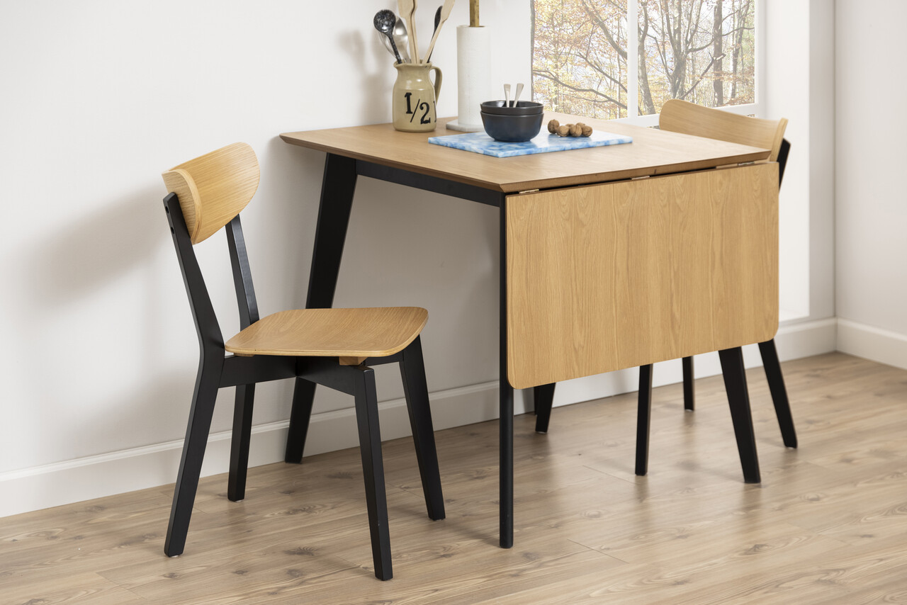 Scaun Roxby, Actona, 45x55x79.5 cm, lemn de cauciuc, stejar/negru mat