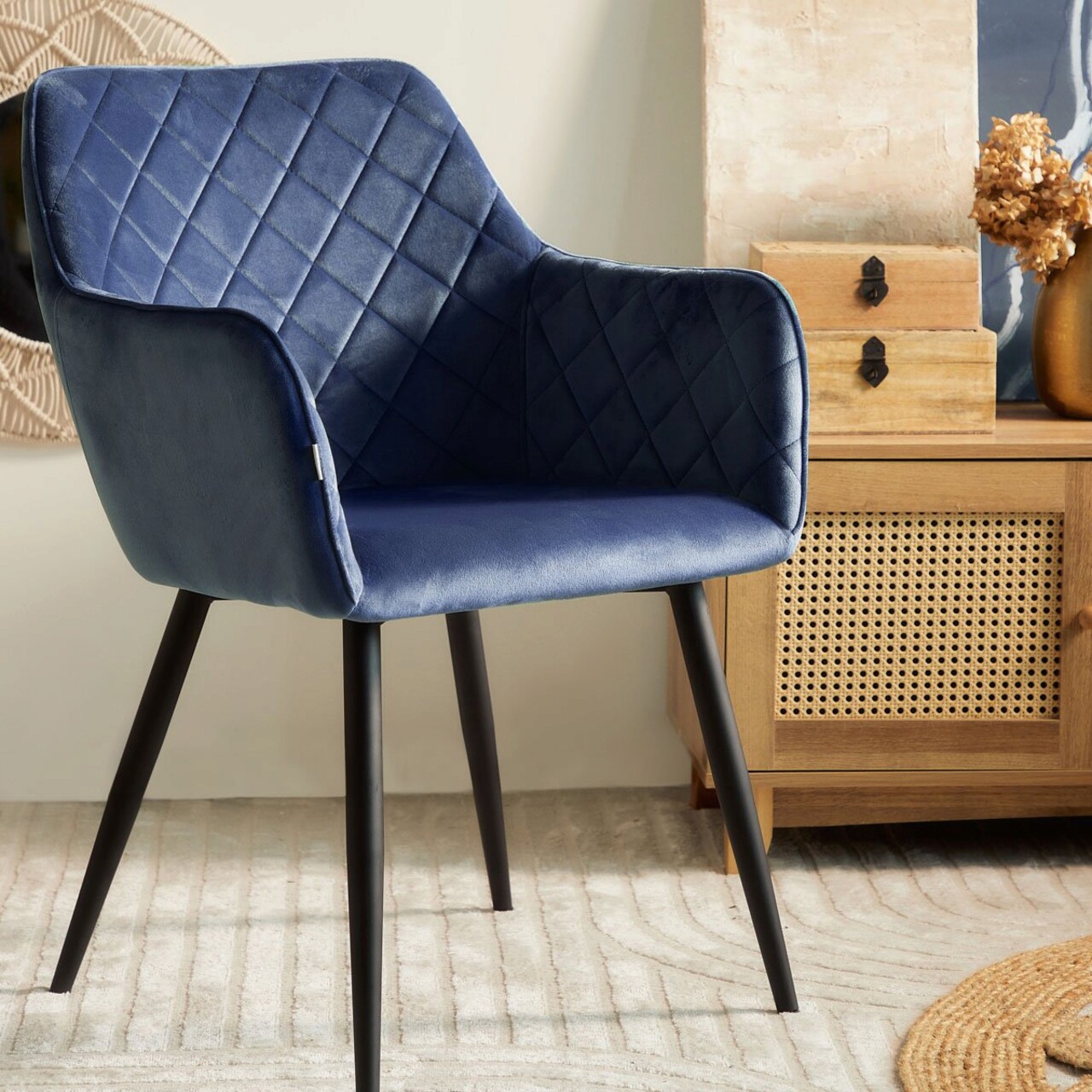 Scaun Shelton, Homla, 60x56x84 cm, metal/catifea din poliester, albastru