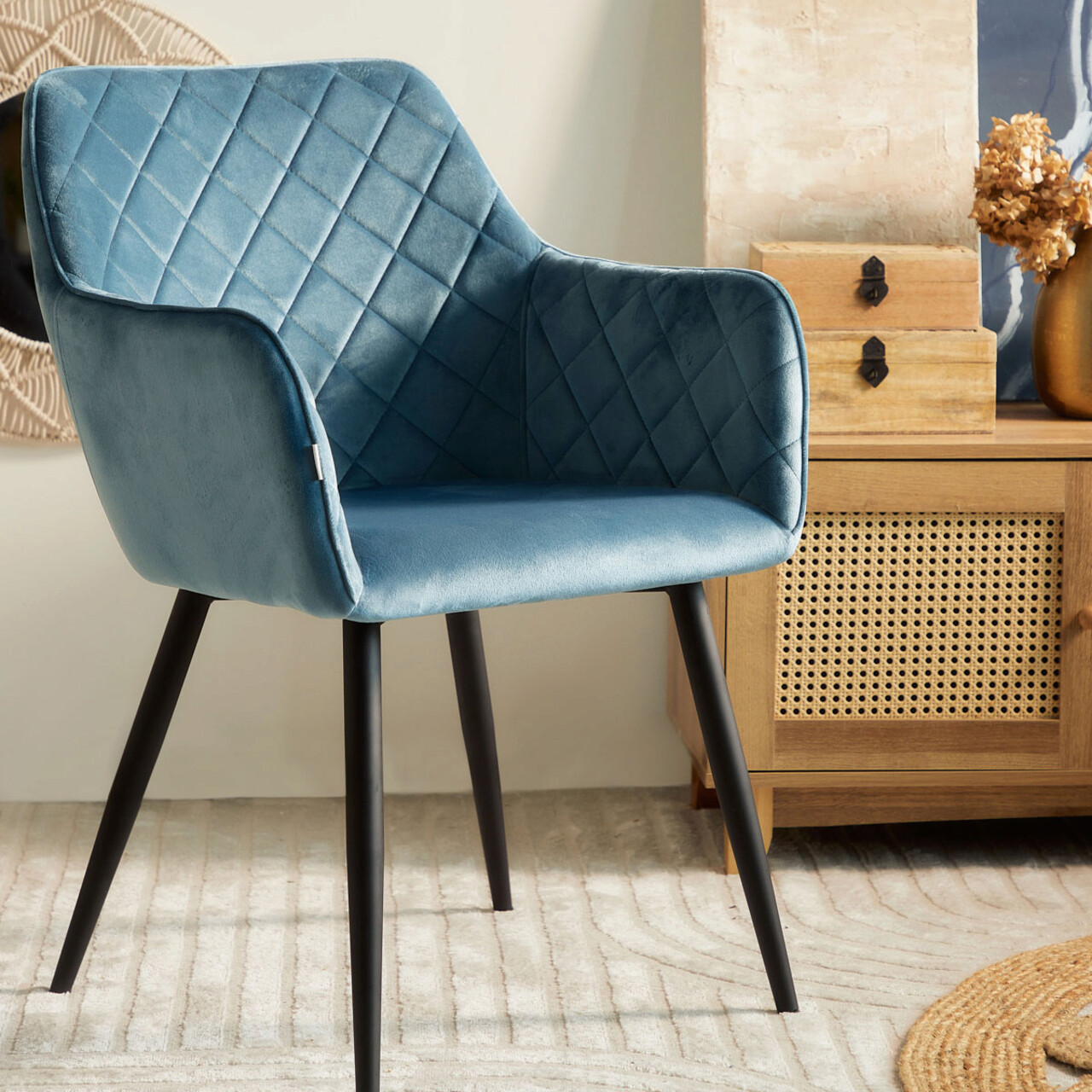 Scaun Shelton, Homla, 60x56x84 cm, metal/catifea din poliester, turcoaz