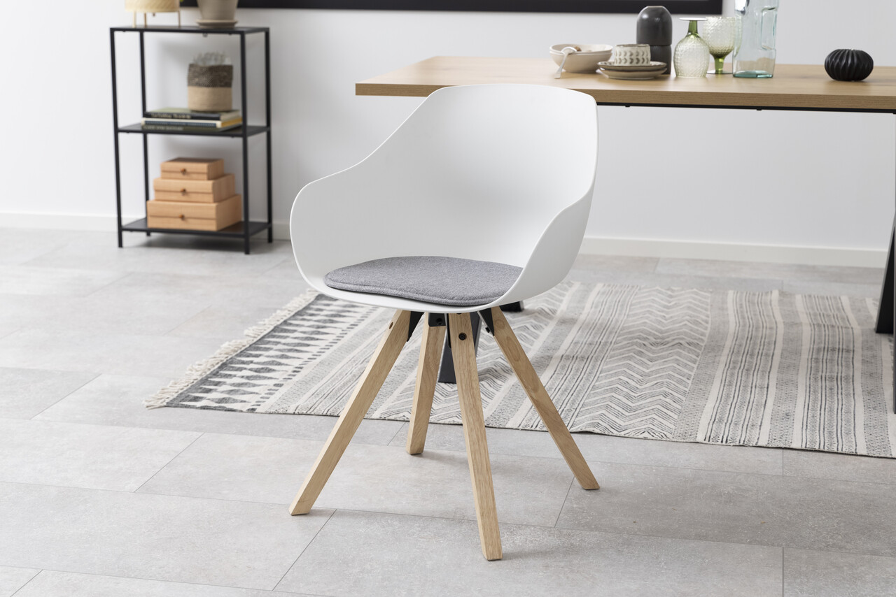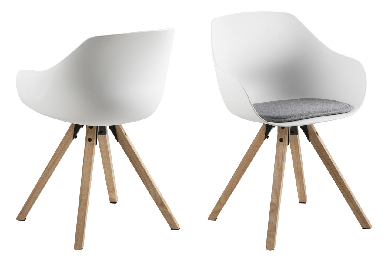 Scaun Tina, Actona, 56.5x53x80.5 cm, poliester/lemn de cauciuc, gri deschis