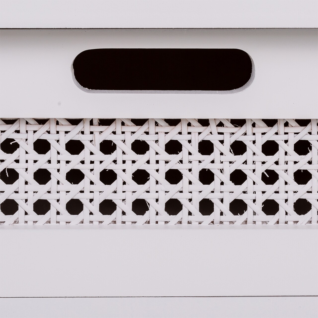 Scaun tip treapta, Emma, Creaciones Meng, 34x34x34 cm, 2 sertare, lemn de paulownia/trestie, alb