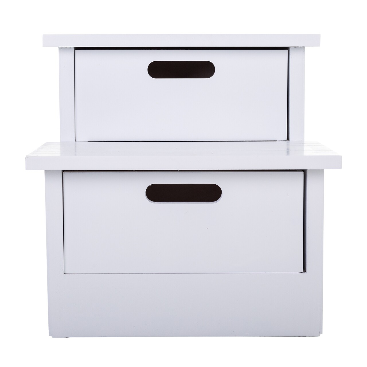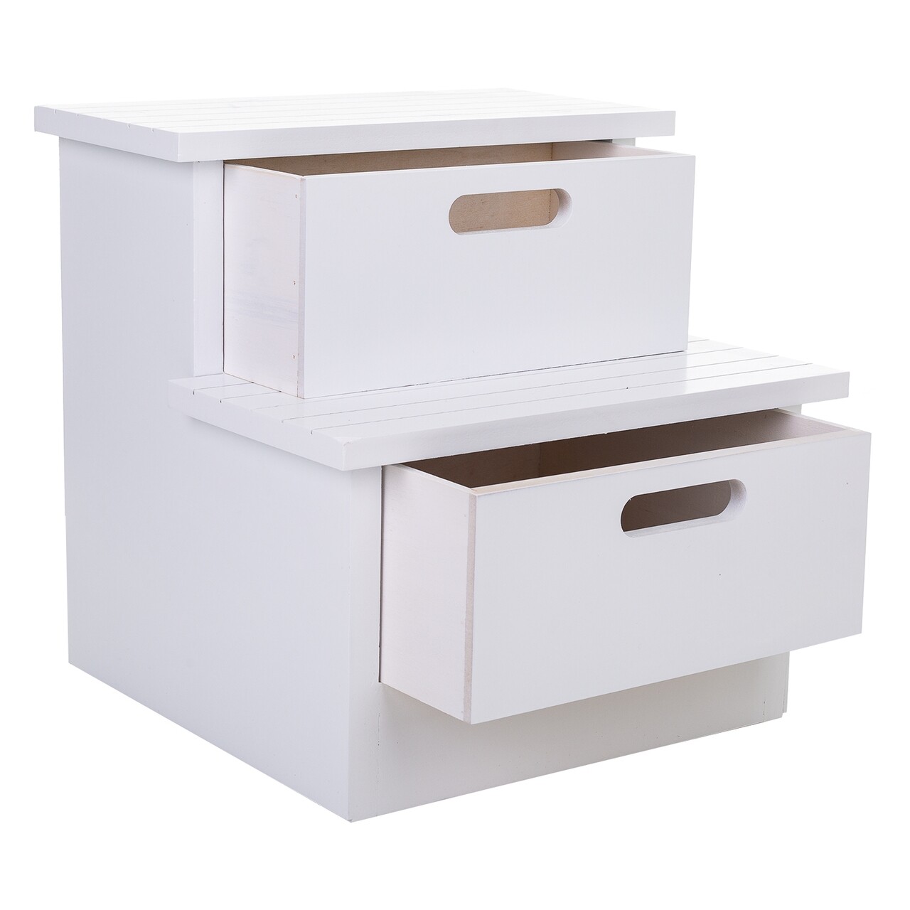 Scaun tip treapta, Melina, Creaciones Meng, 34x34x34 cm, 2 sertare, lemn de paulownia, alb