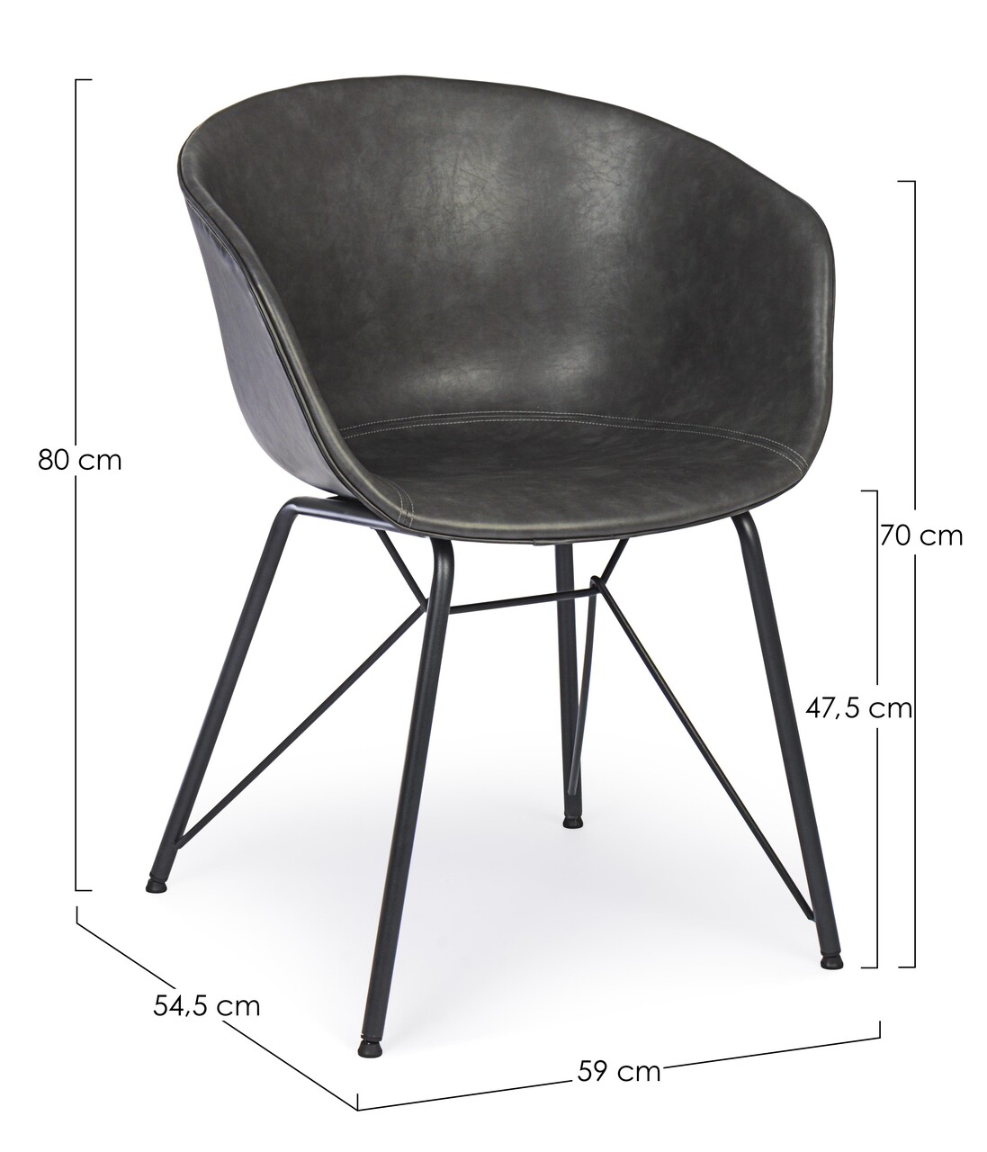 Scaun Warhol, Bizzotto, piele ecologica, 59x54.5x80 cm, gri