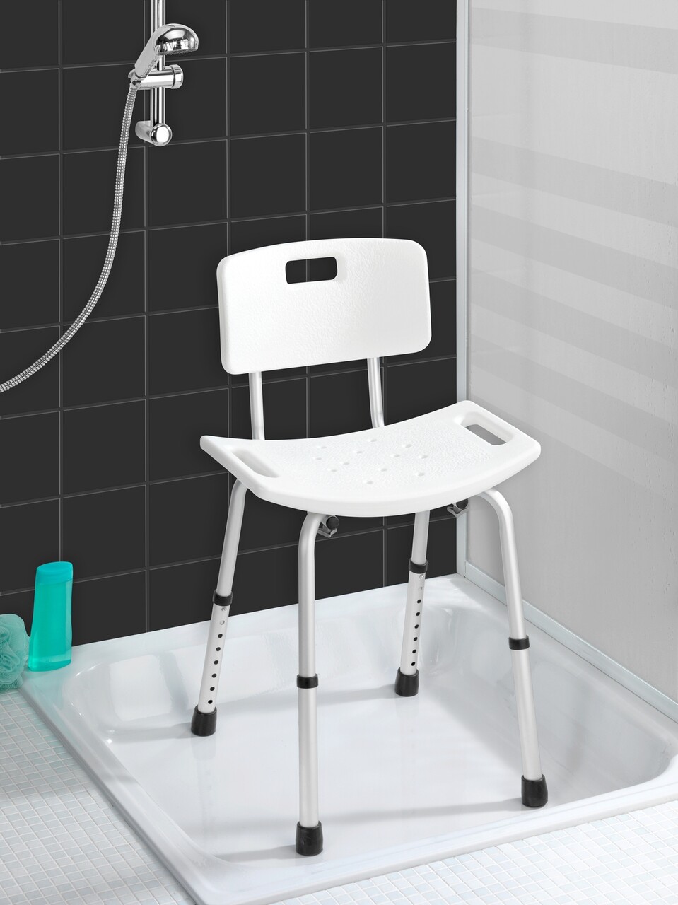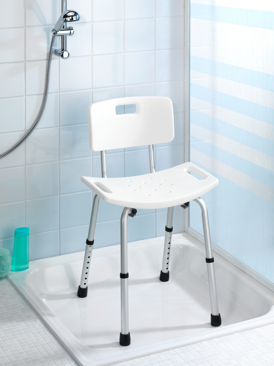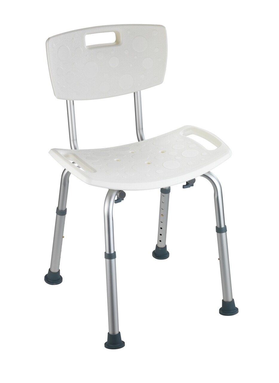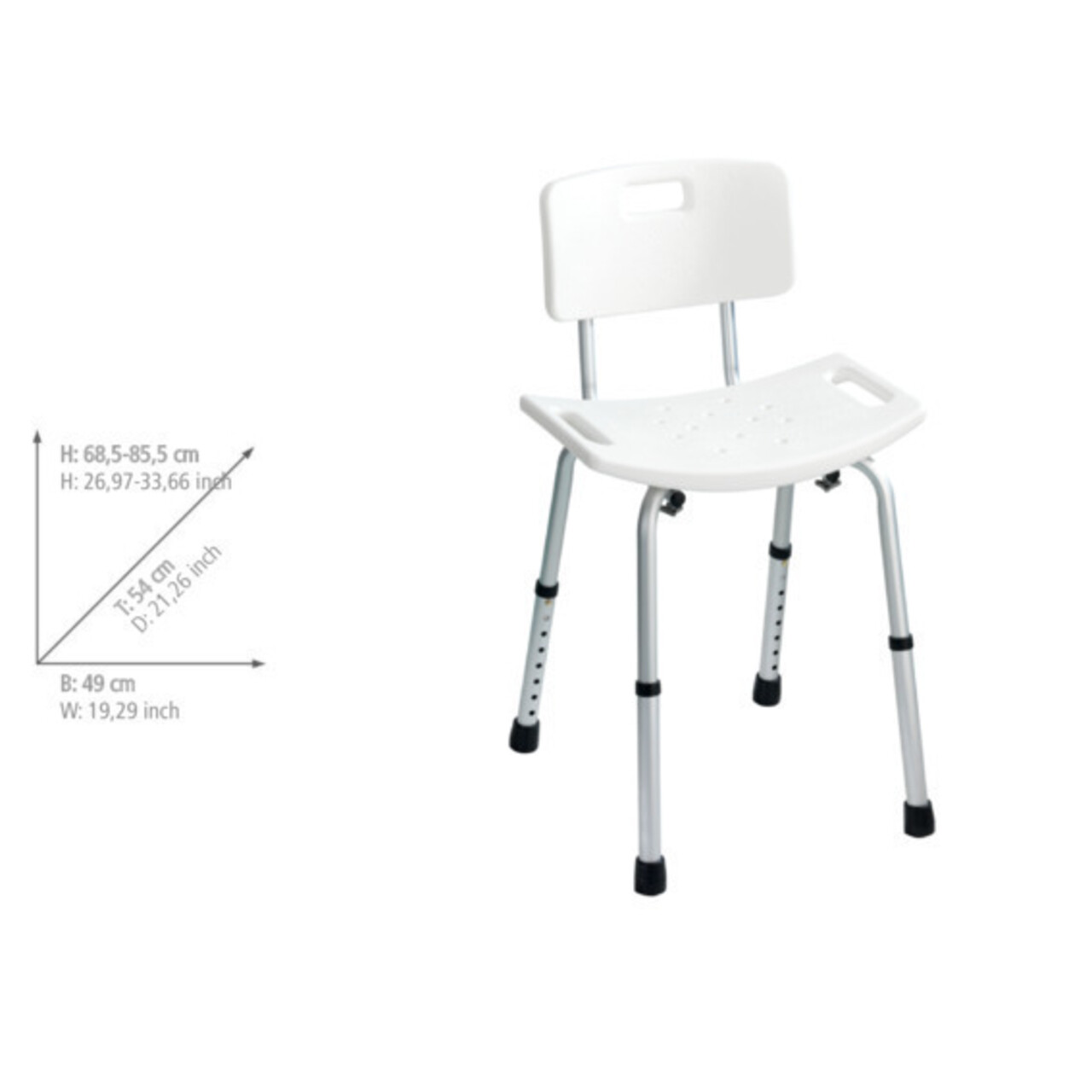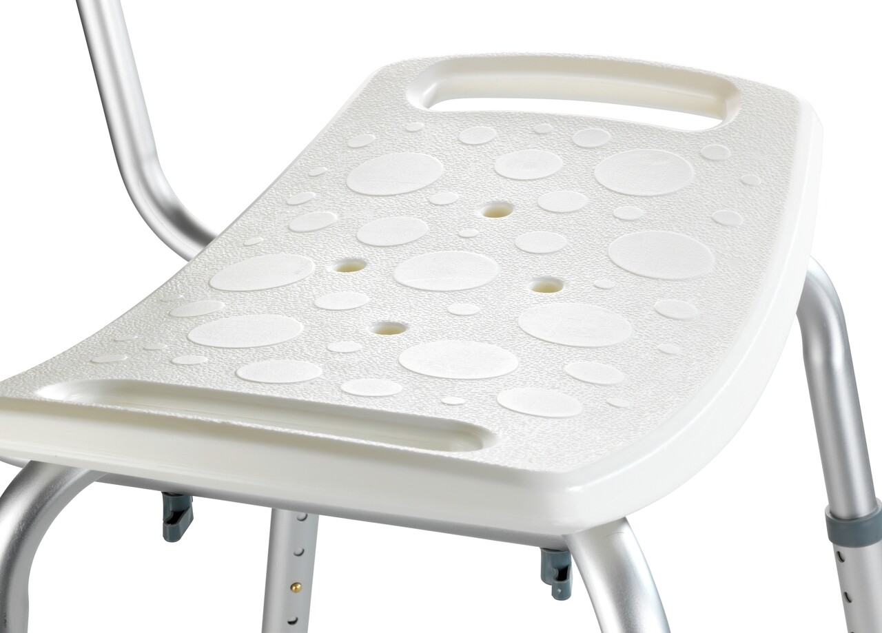 Scaunel pentru baie Secura, Wenko, 49x54x68.5-85.5 cm, aluminiu/plastic/cauciuc, alb/gri