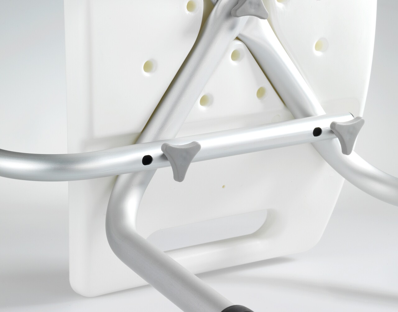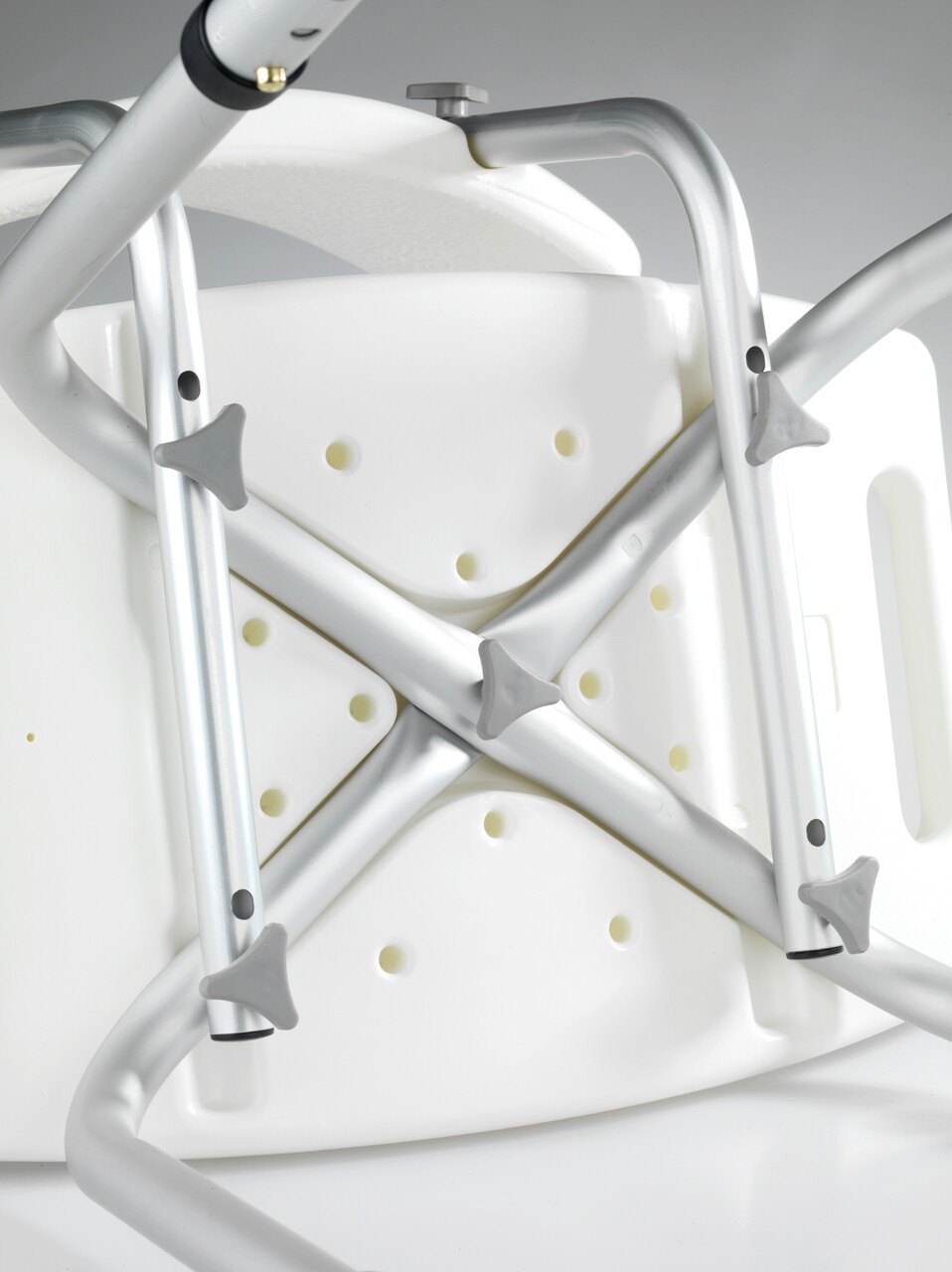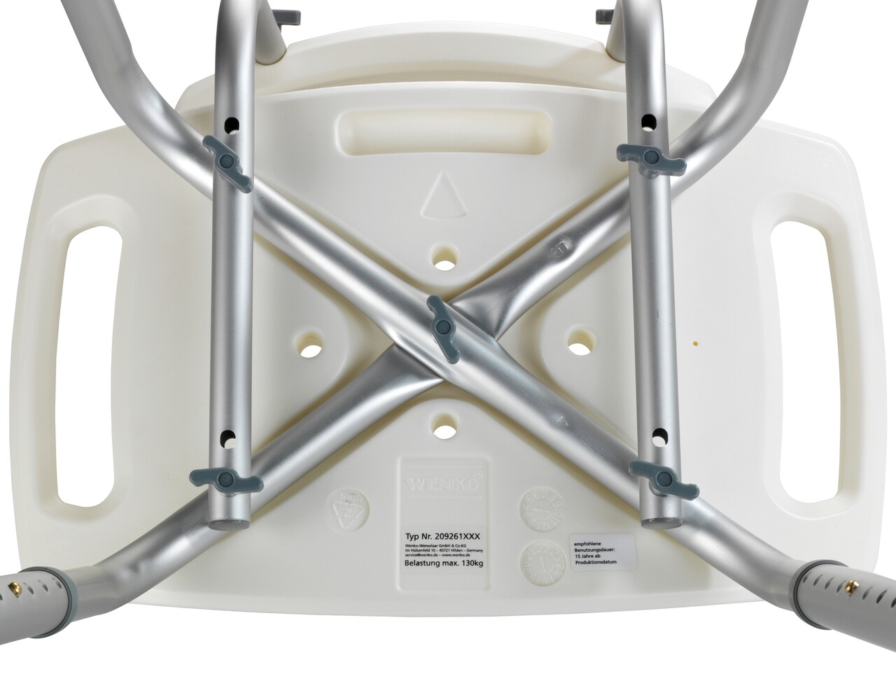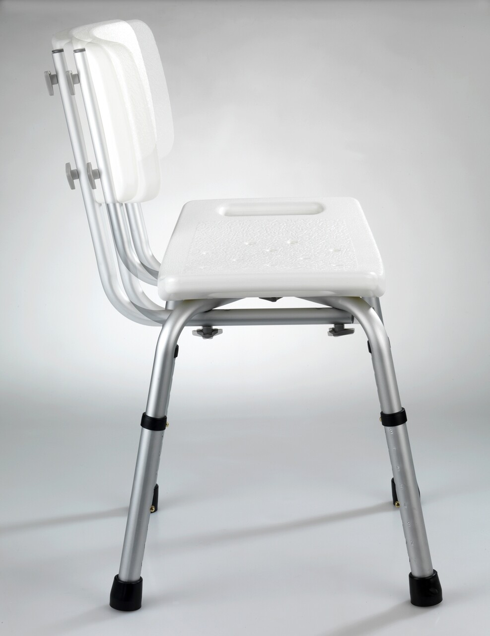Scaunel pentru baie Secura, Wenko, 49x54x68.5-85.5 cm, aluminiu/plastic/cauciuc, alb/gri