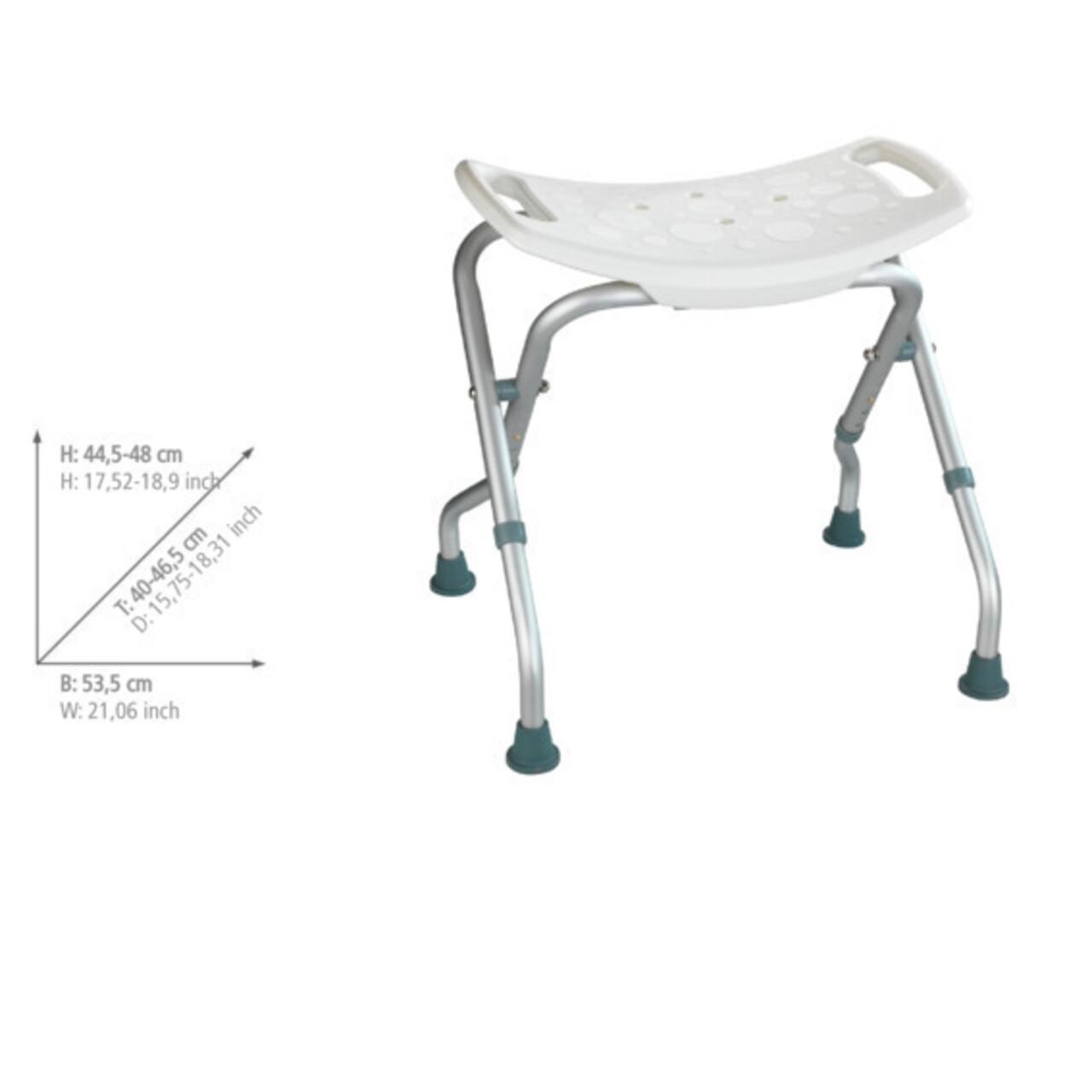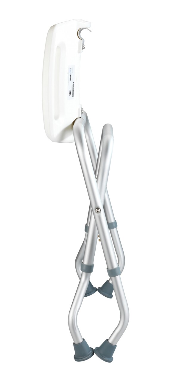 Scaunel pentru baie Secura, Wenko, 53.5x40-46.5x44.5-48 cm, aluminiu/plastic/cauciuc, alb/gri