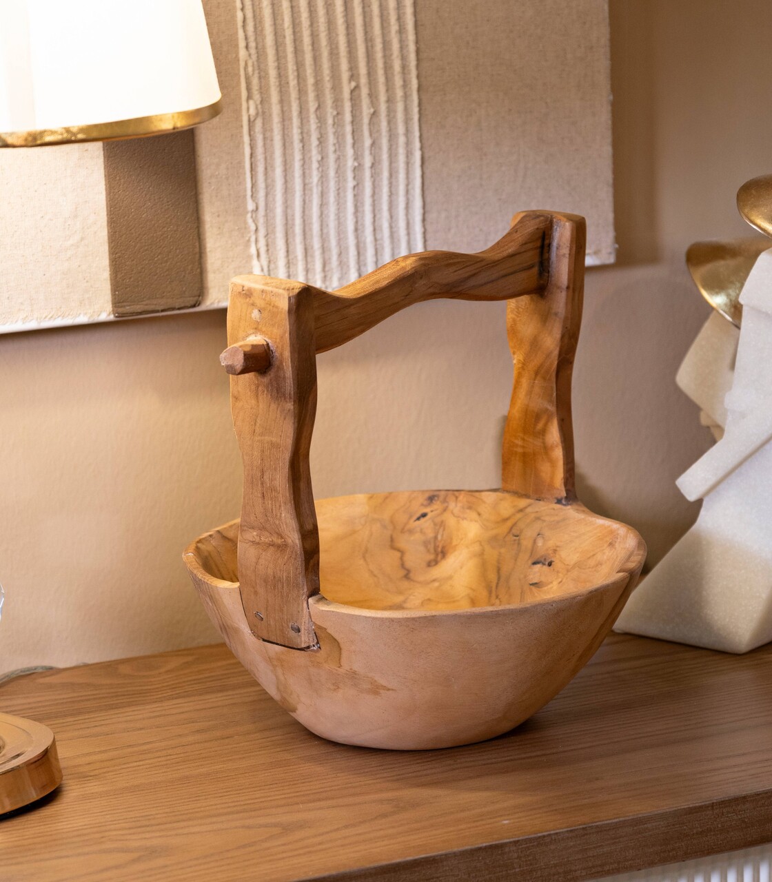 Sculptura decorativa / vas decorativ Timbo, Mauro Ferretti, 32x25x27 cm, tec reciclat, lucrat manual, model unicat, maro