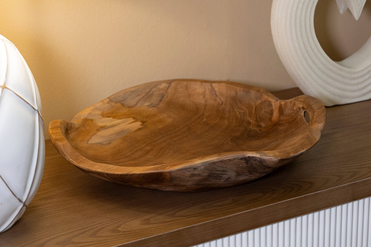 Sculptura decorativa / vas decorativ Wahan, Mauro Ferretti, 42x36x7 cm, tec reciclat, lucrat manual, model unicat, maro