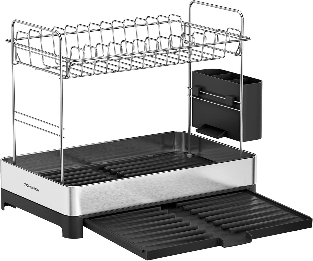 Scurgator pentru vase cu 2 niveluri Songmics, 25-44x40x33.4 cm, max 22 kg, inox/plastic, argintiu/negru