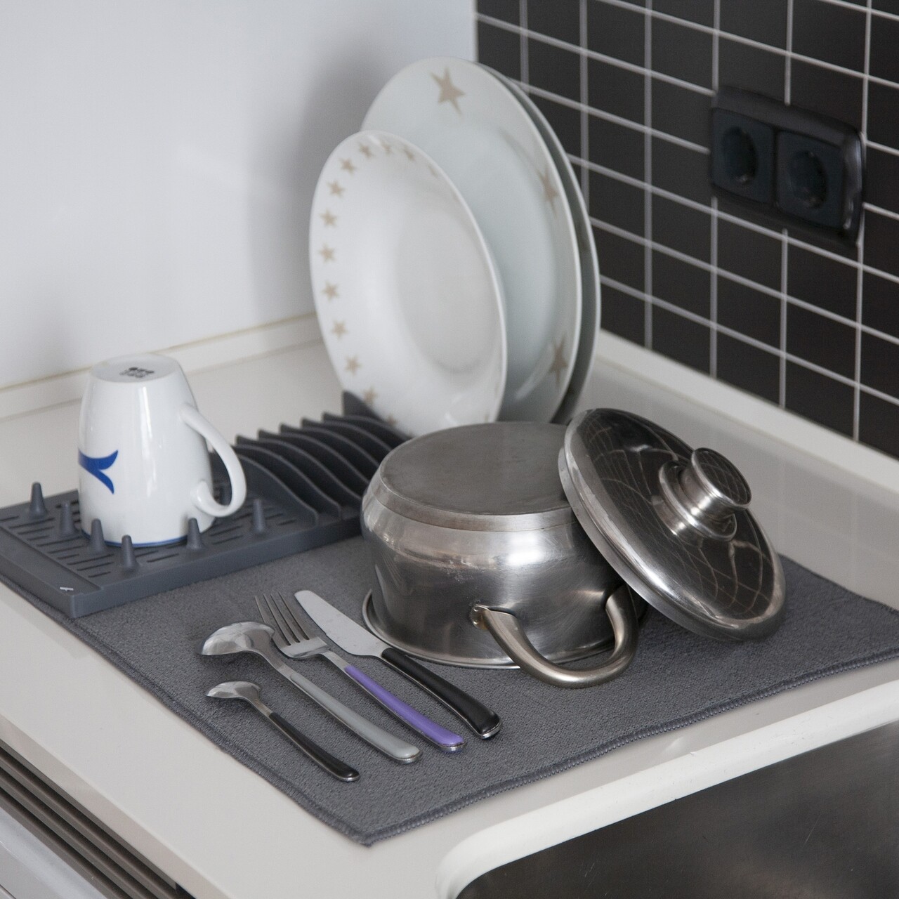 Scurgator vase cu covoras absorbant Gray Dish, Versa, 50x40 cm, gri