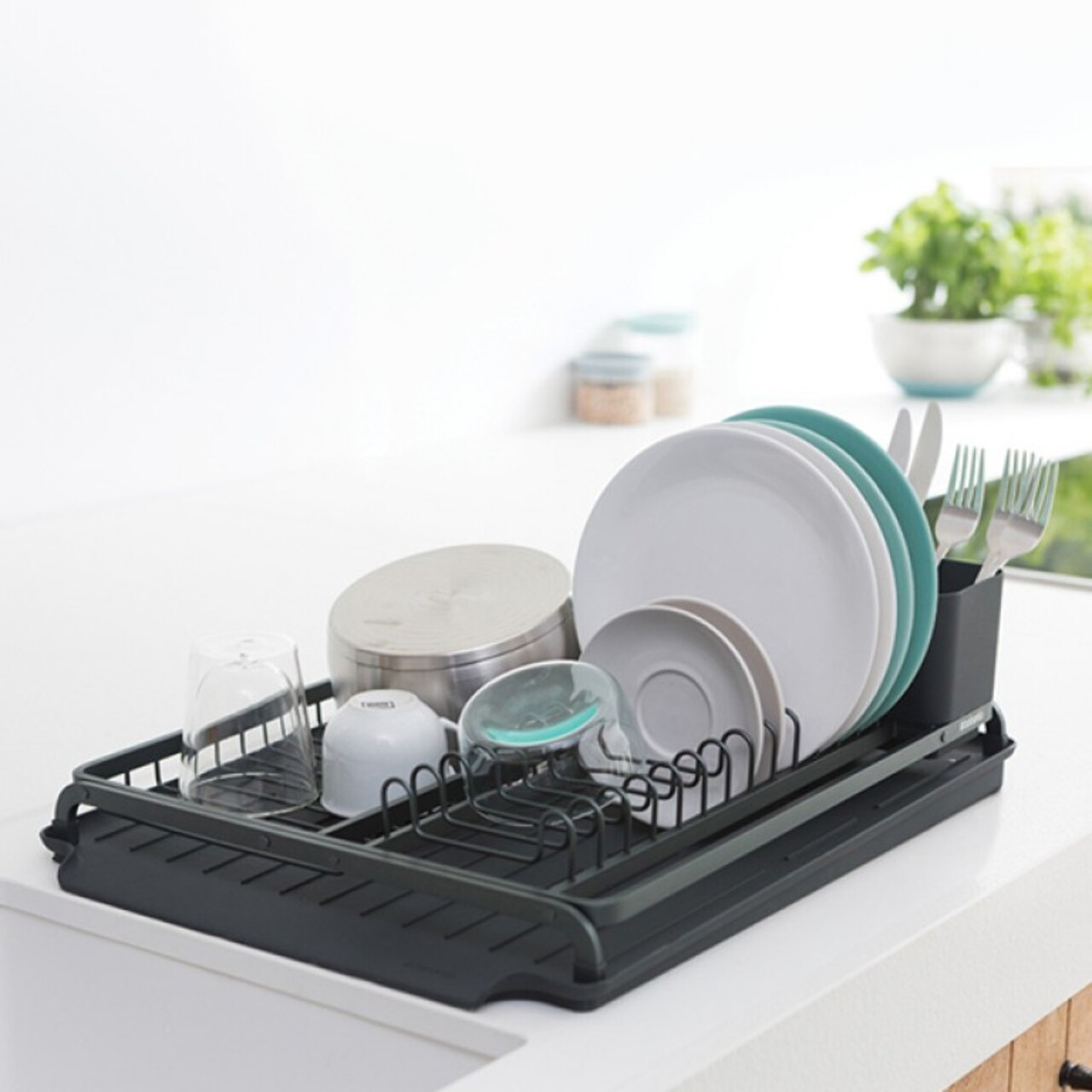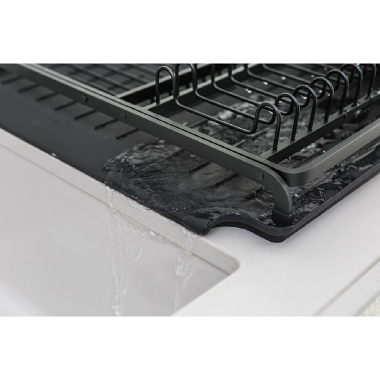 Scurgator vase cu suport tacamuri, Brabantia, SinkSide, 38.5x49x14 cm, aluminiu, gri inchis