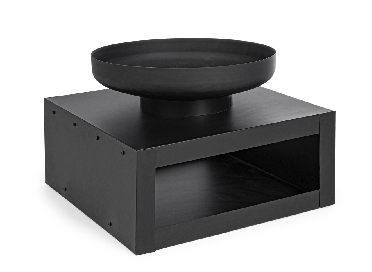 Semineu aer liber cu suport pentru lemne Efesto, Bizzotto, 70 x 70 x 38 cm, otel, negru